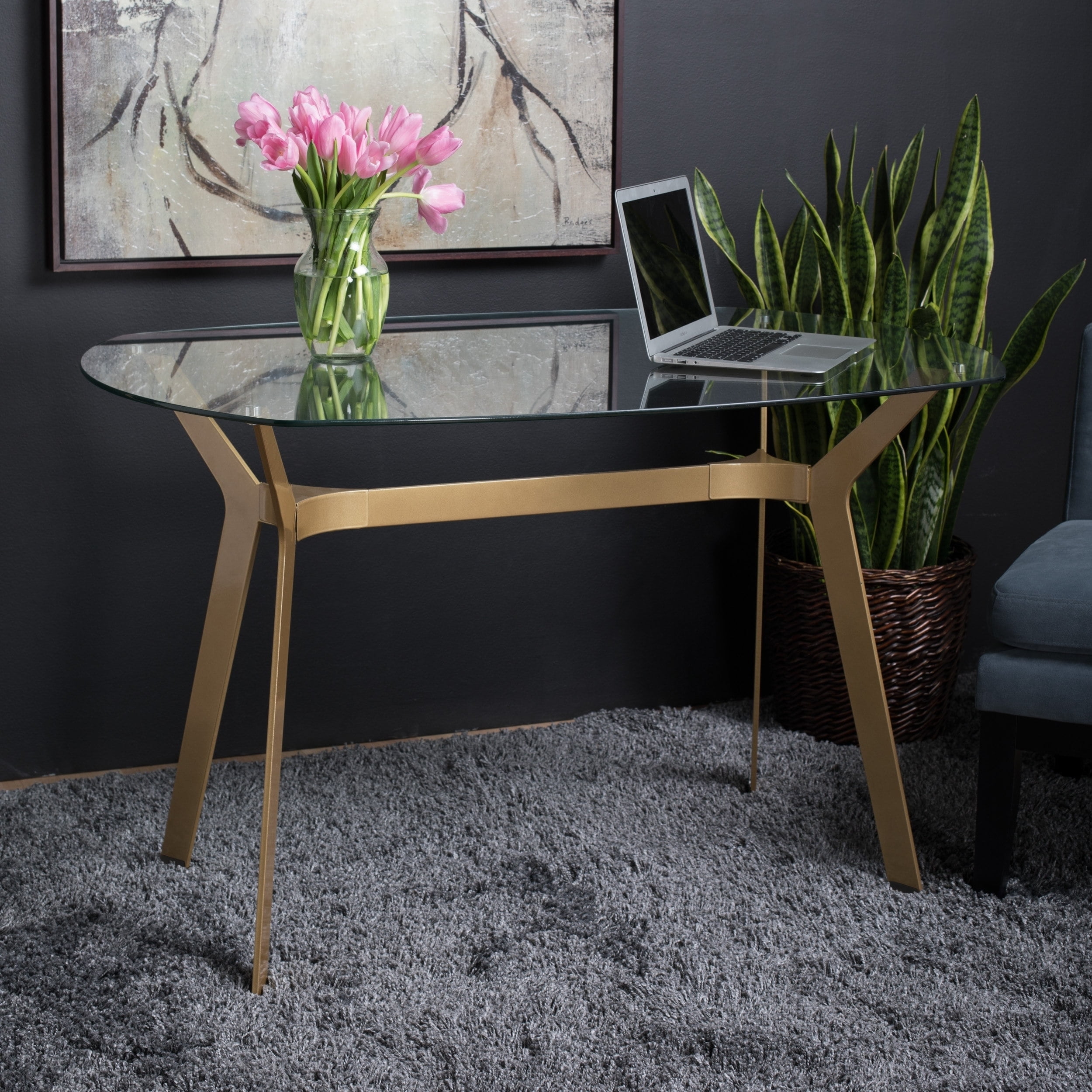 Studio Designs Archtech Modern Glass Desk, Clear/Gold Finish