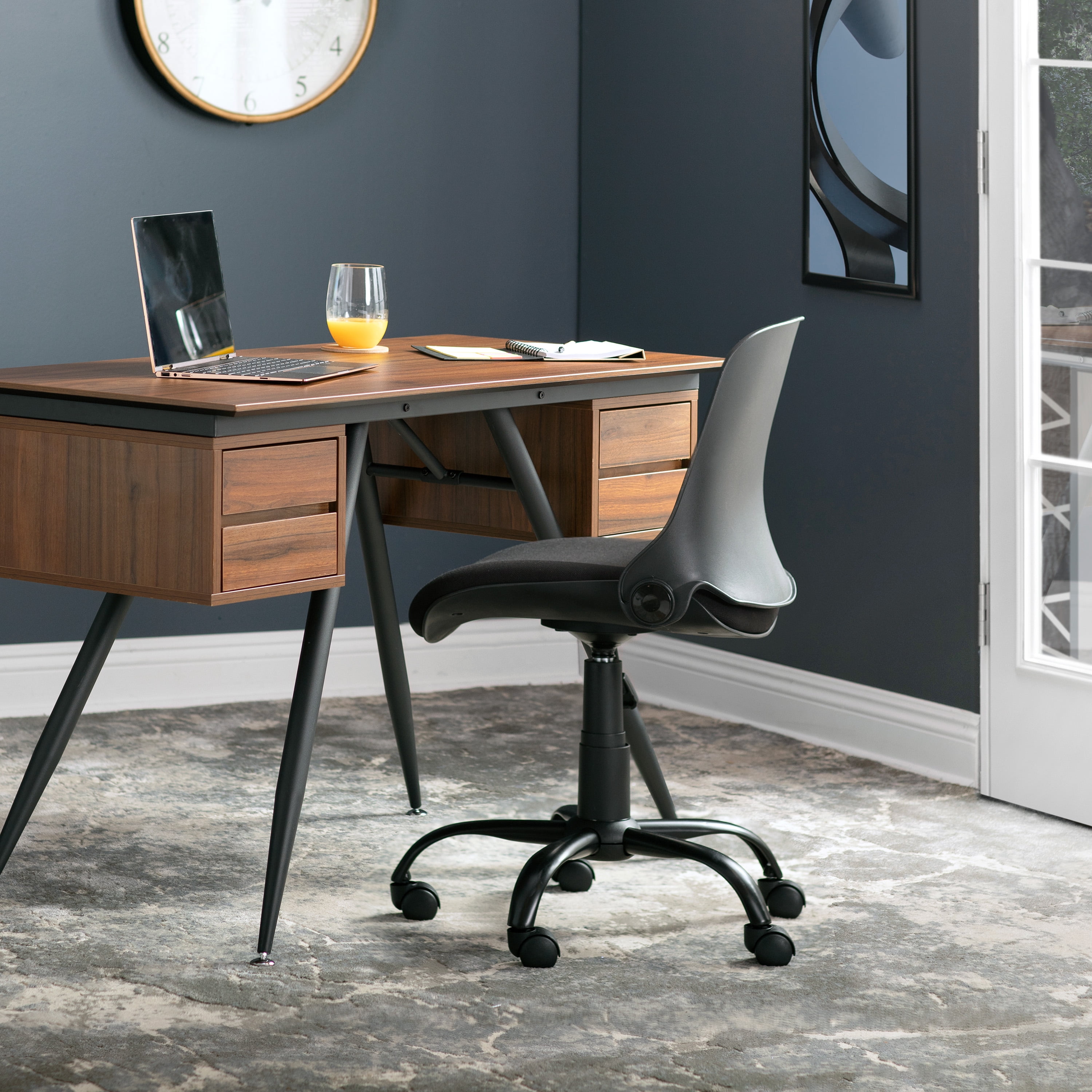Inspired by minimalist Scandinavian design, this easy to assemble chair is a classic choice for today’s modern home office. The contoured, heavy-plastic back comes already attached to the seat and easily folds down to store it under a desk- making it perfect for small spaces. The durable, steel, 5-star base and 360-degree swivel casters allow for smooth-rolling mobility. The thick, full swivel, padded seat combines breathable, easy to clean fabric, and high-density foam for hours of comfort. The pneumatic gas lift allows you to easily adjust the height of the seat for ergonomic comfort.