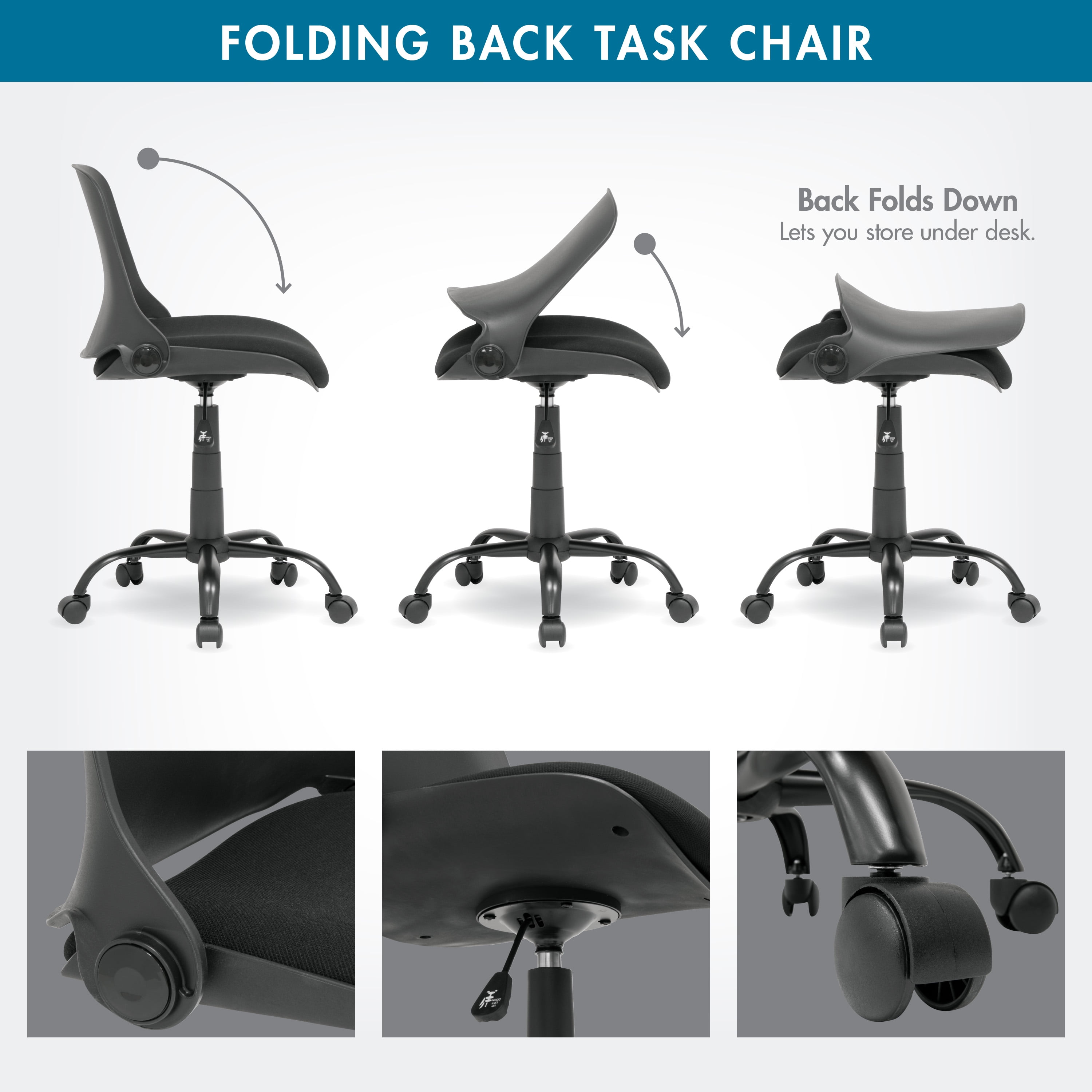 Studio Designs Folding Back (Space Saving) Modern Swivel Office Task Chair with Height Adjustable Seat, Black