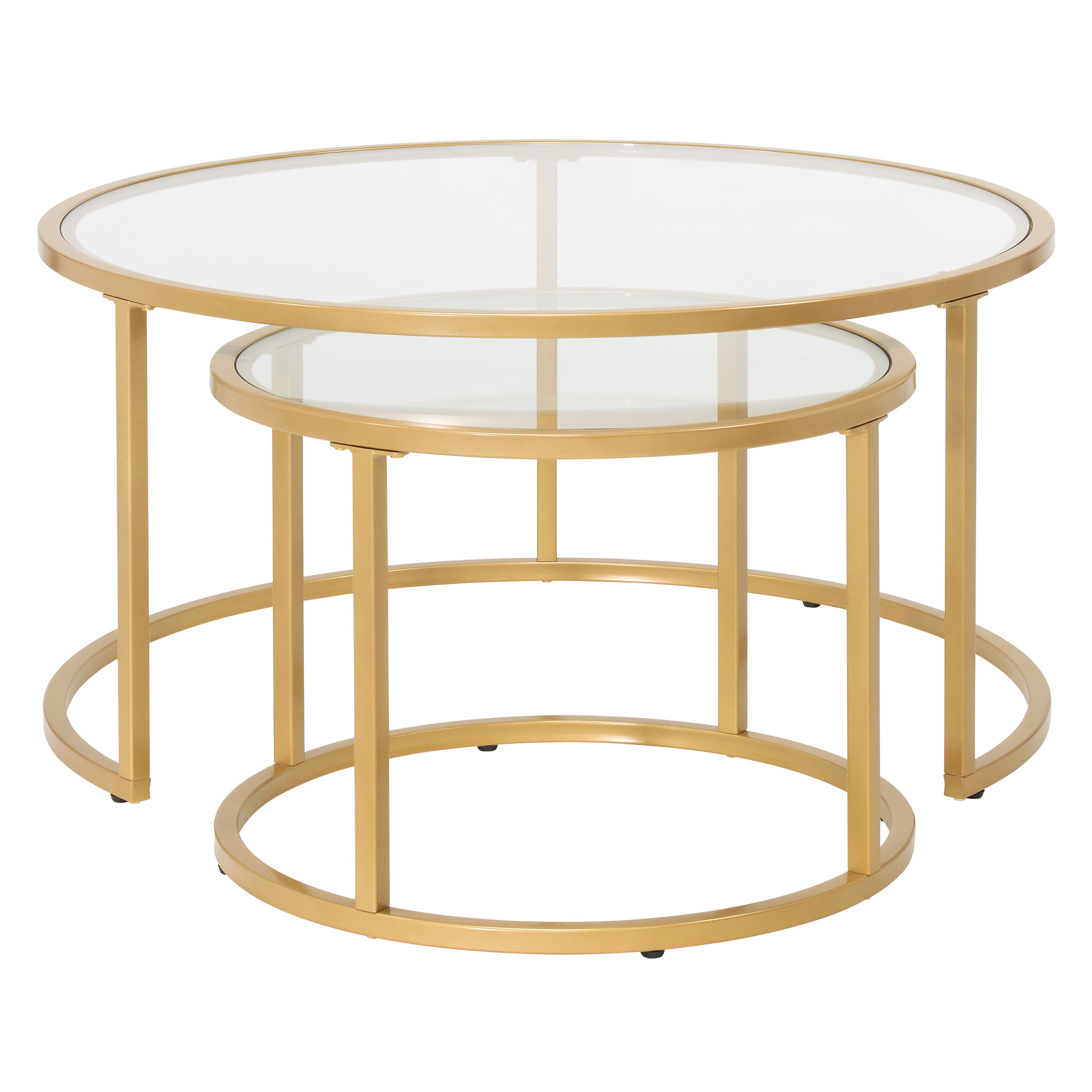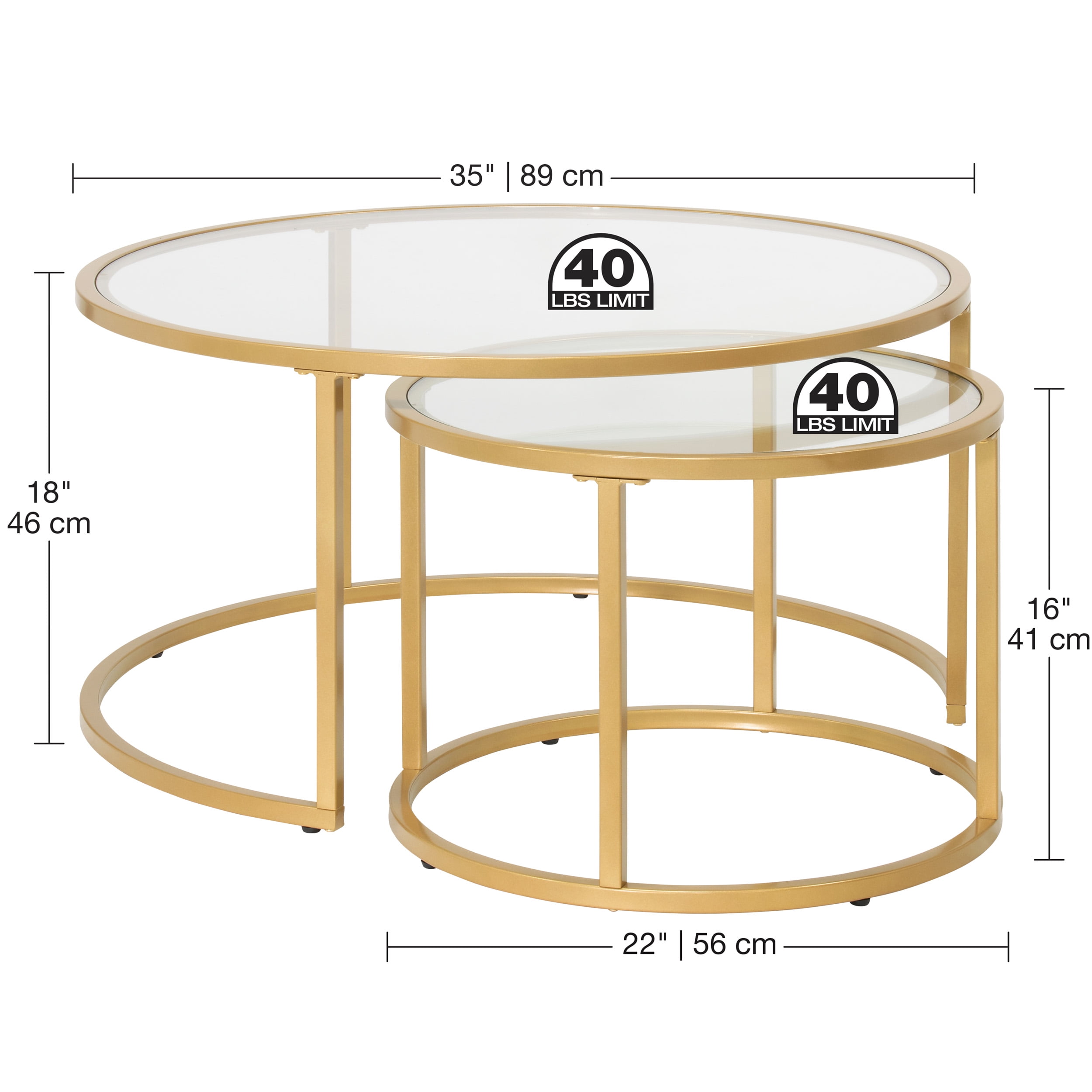 Studio Designs Home Camber Elite Round 35″ and 22″ Wide Modern Metal and Glass Living Room Nesting Coffee Table Set in Gold