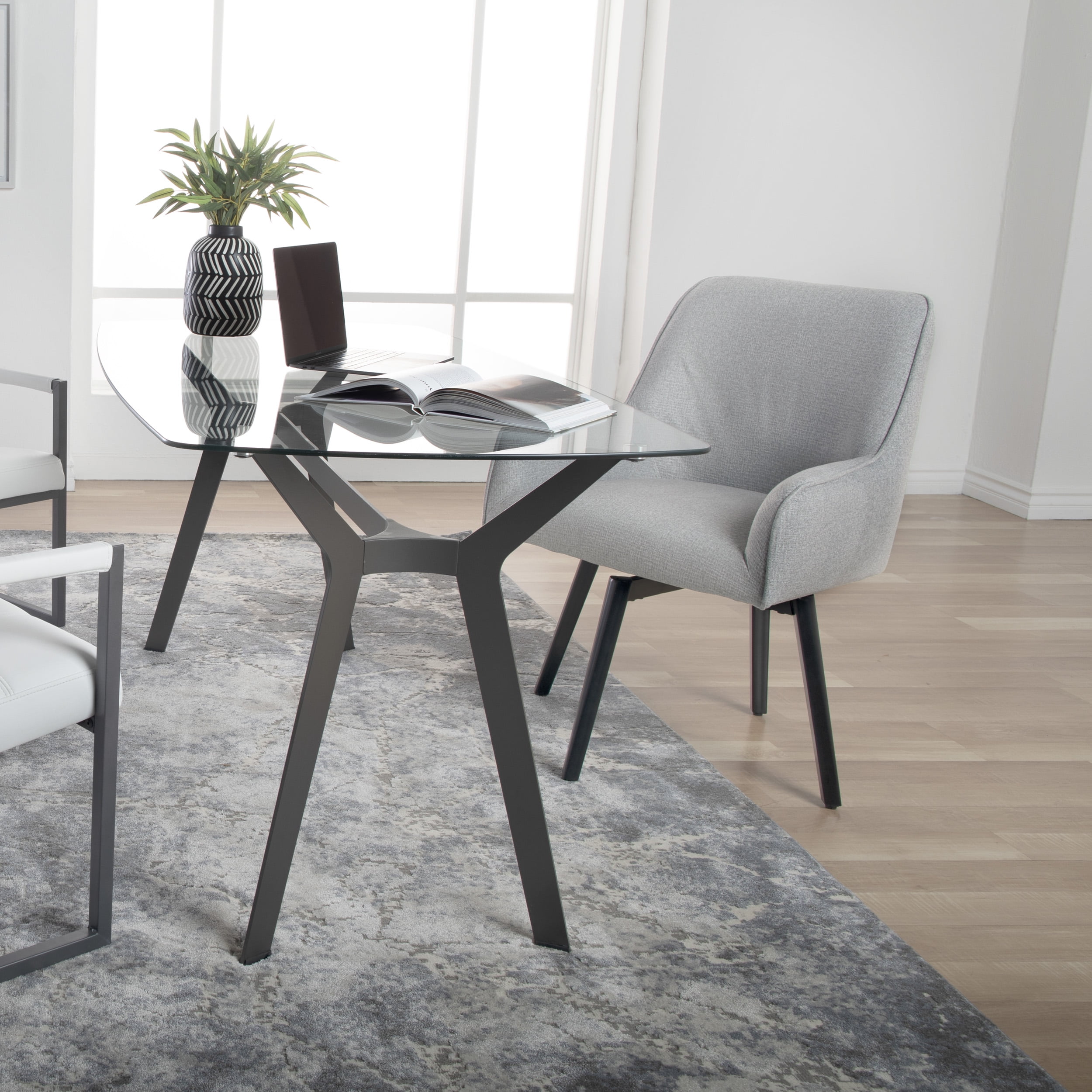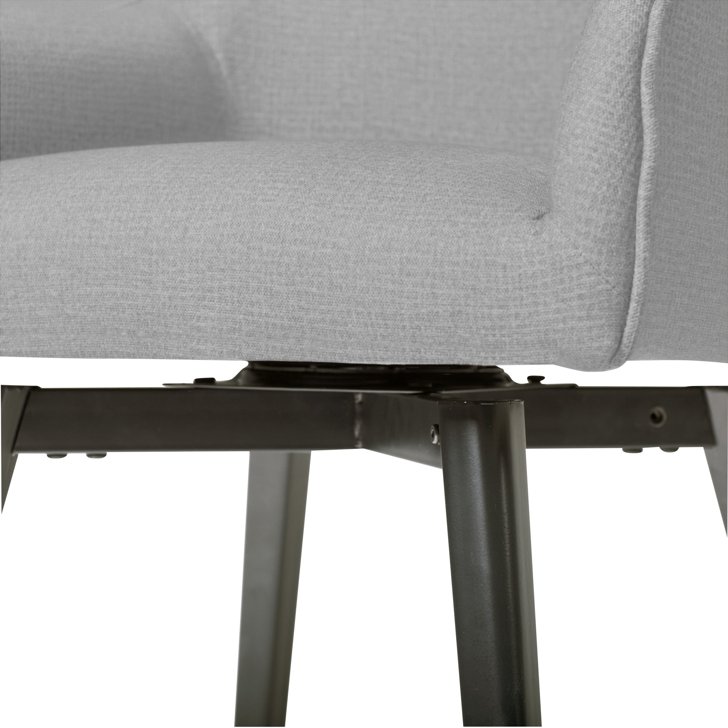 The Spire Luxe Swivel Chair by Studio Designs Home combines simple lines with handsome upholstery to create a stylish seating option for the office, dining room or as a guest chair. The sculpted back and retro silhouette is updated with a full 360-degree swivel seat. The upscale tweed like covering in neutral colors is easy to clean. The metal legs on the Spire Luxe Swivel Chair ensure that the chair will not loosen or break over time like most conventional four-legged wooden chairs. The firm back and seat provide support for years of use. Available in Heather Gray (Item # 70184), Camel Beige (Item # 70185) or Charcoal Gray (Item #70186)