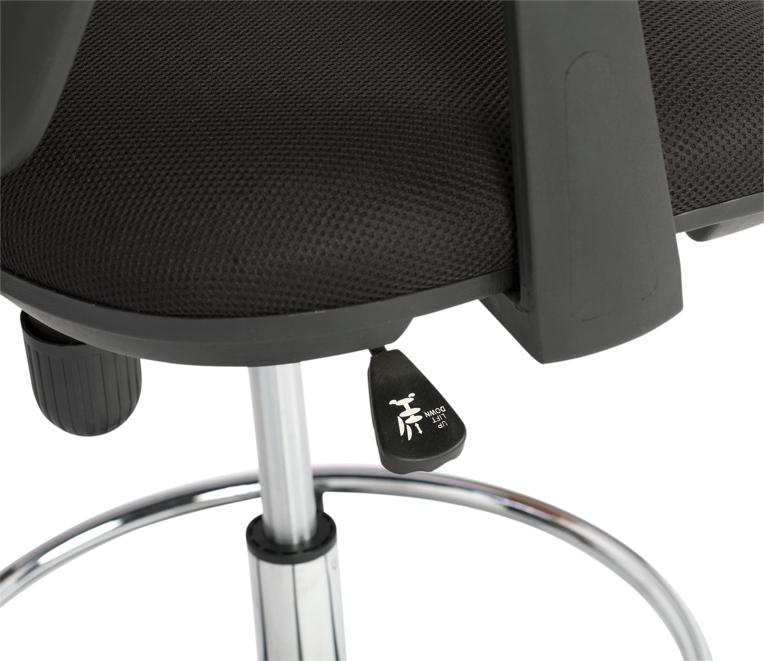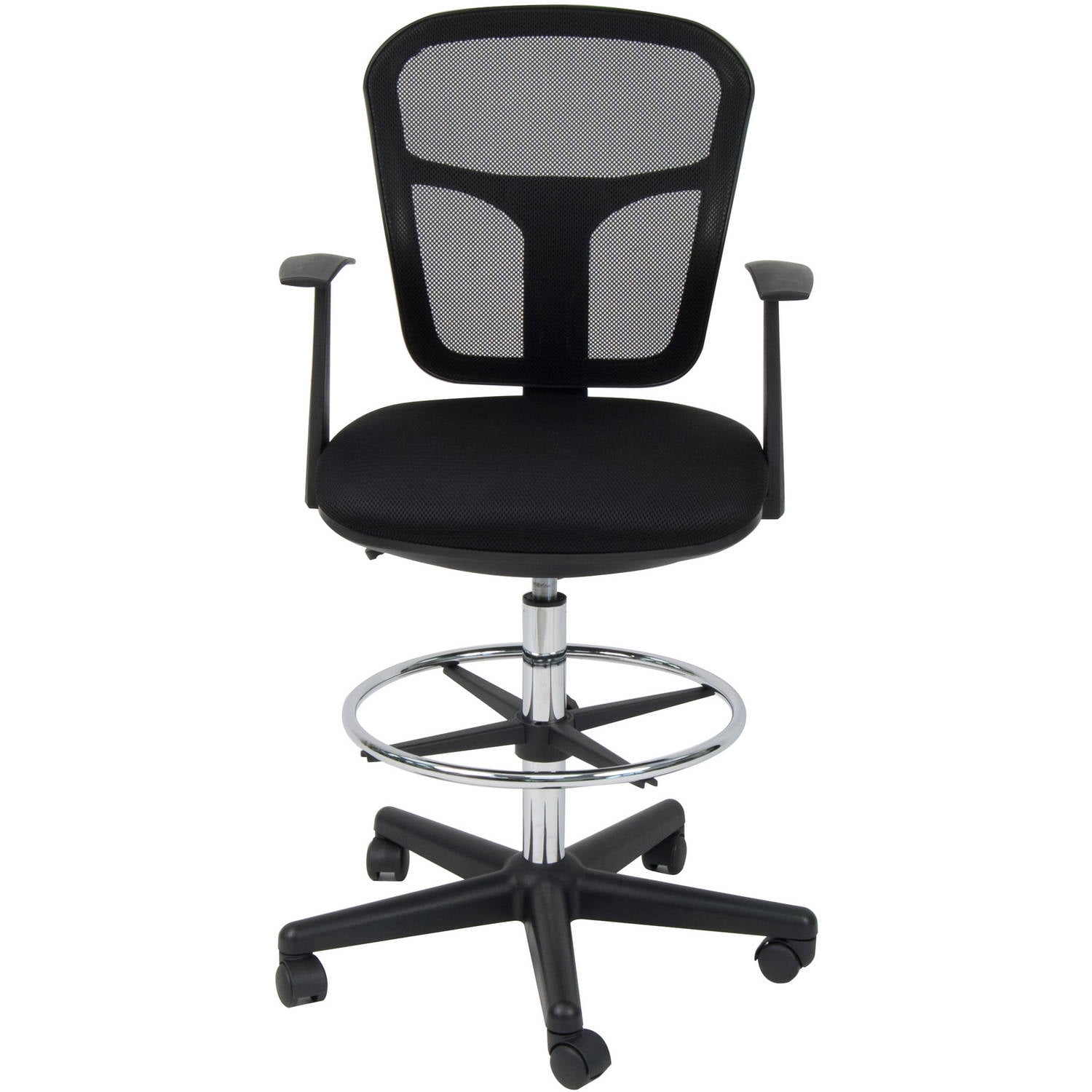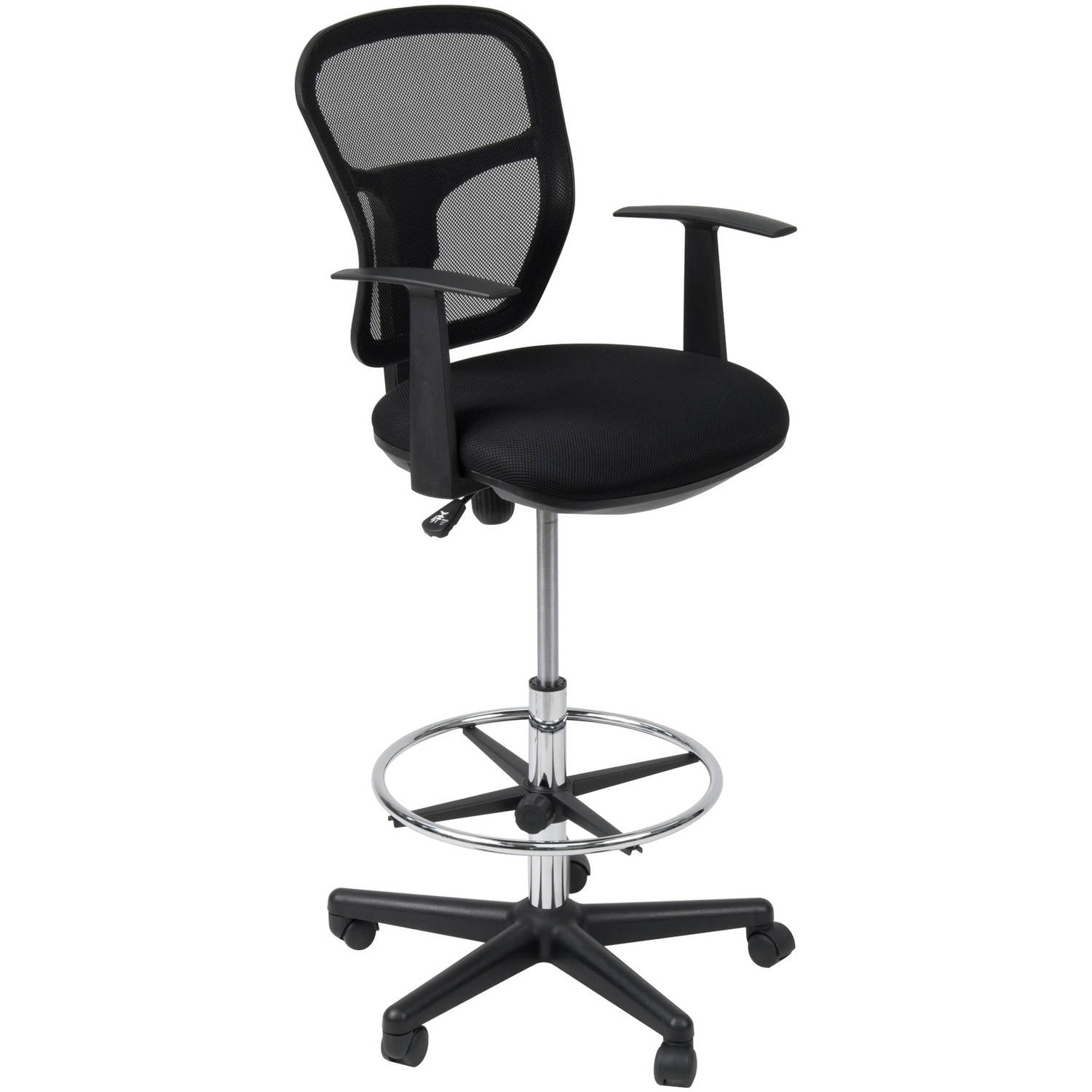 Overall Dimensions: 25.5″ W x 25.5″ D x 42.5″ – 51″ H DRAFTING DESK CHAIR: An adjustable-height working chair to be used at your drafting or art table with a contoured, breathable mesh back and durable armrests for added comfort. Backrest Dimensions: 18″ W x 17.75″ H STYLISHLY DESIGNED OFFICE CHAIR: Upgrade your computer chair or design studio with this classic-style rolling swivel chair with polyester fabric upholstery and mesh back for durability. ADJUSTABLE HEIGHT: Pneumatic gas lift with height adjustment handle and five-star nylon base with 2″ covered casters Adjustable height: 24.5″ – 30″ seat to floor; Backrest: 18″ W x 17.75″ H; Padded Seat: 19″ W x 17″ D; Weight limit: 250 lbs.