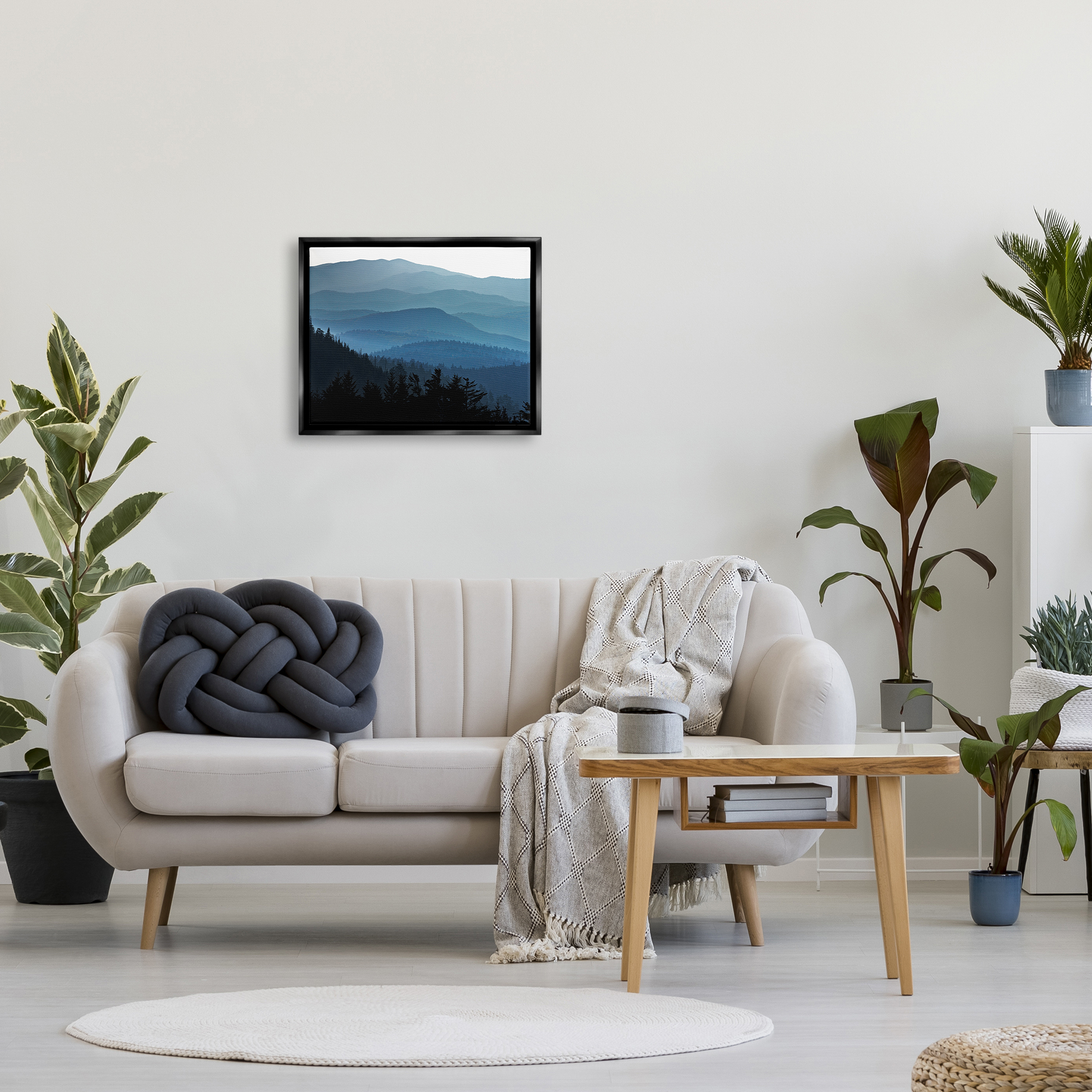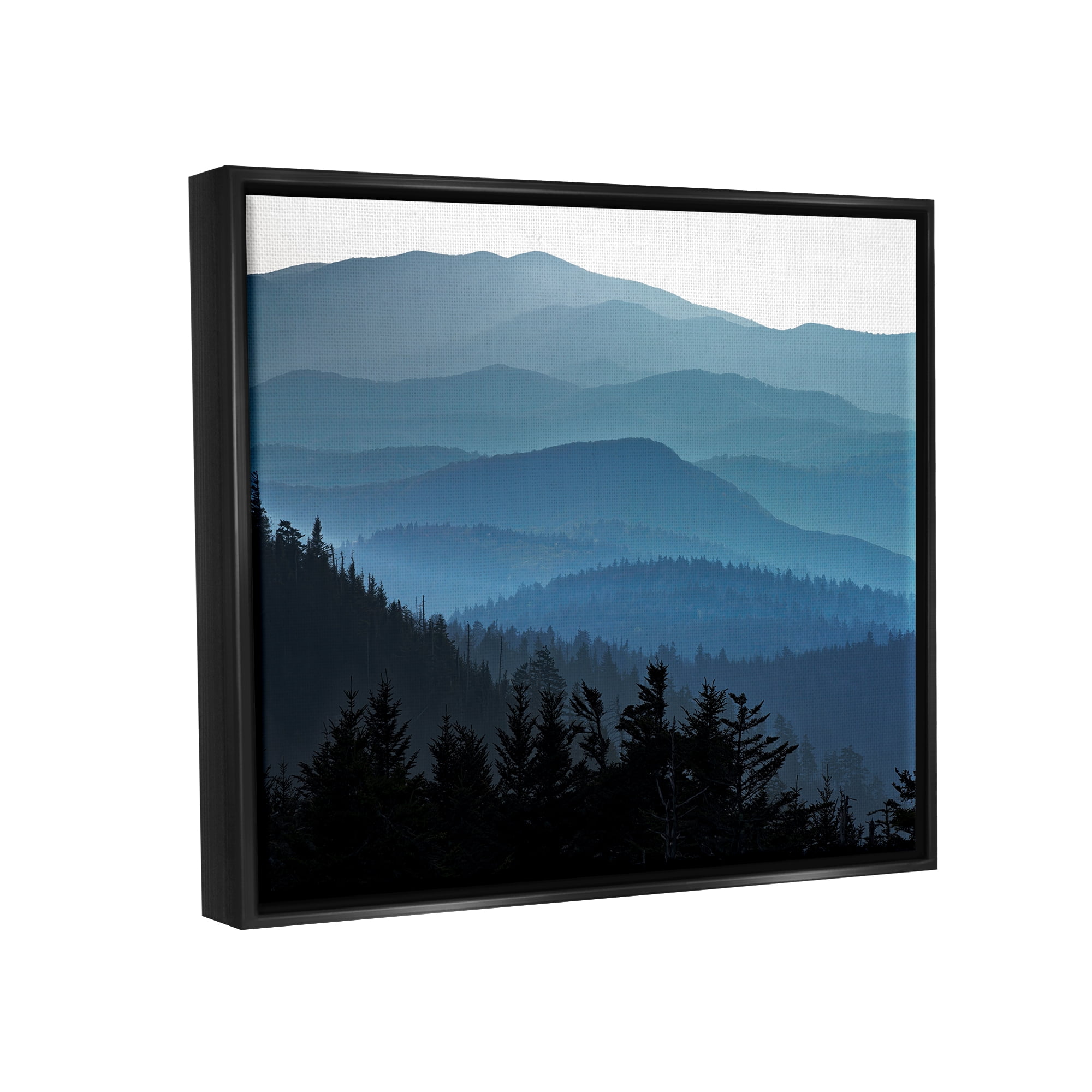 Stupell Blue Layered Mountain Peaks Landscape Photography Black Floater Framed Art Print Wall Art