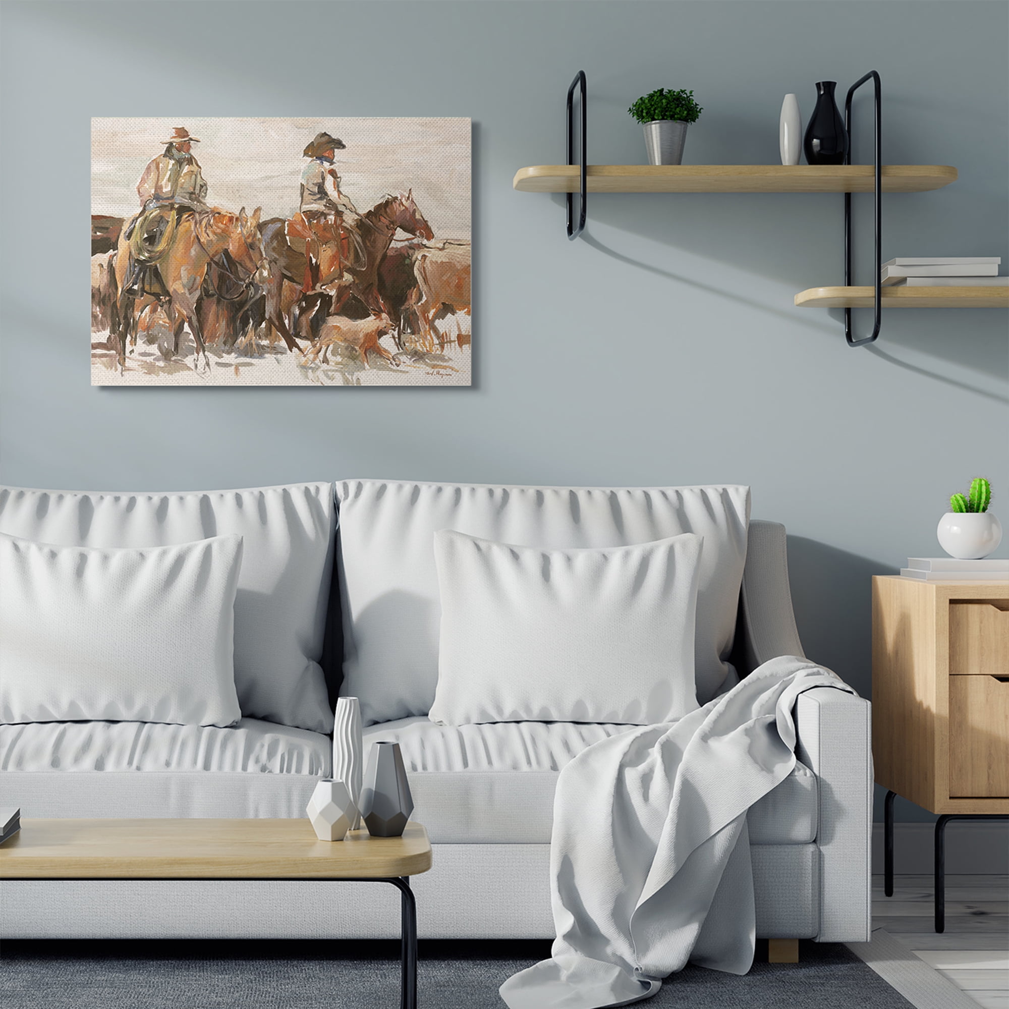 Stupell Home Décor Cowboys and Horses Farm Western Painting Canvas Wall Art by Marilyn Hageman