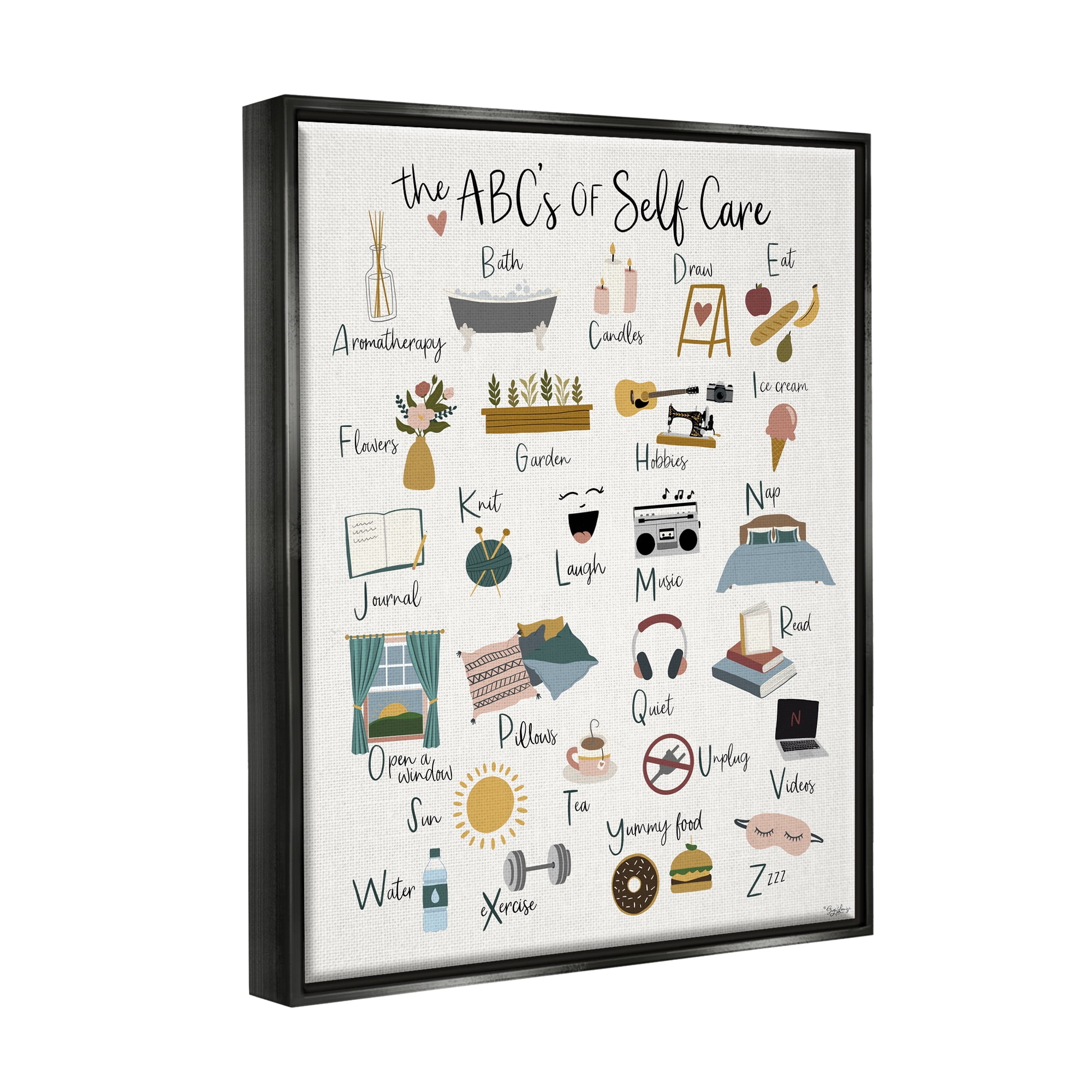 Stupell Industries ABC’s of Self Care Adult Relaxation Alphabet Jet Black Framed Floating Canvas Wall Art, 16×20, by Gigi Louise