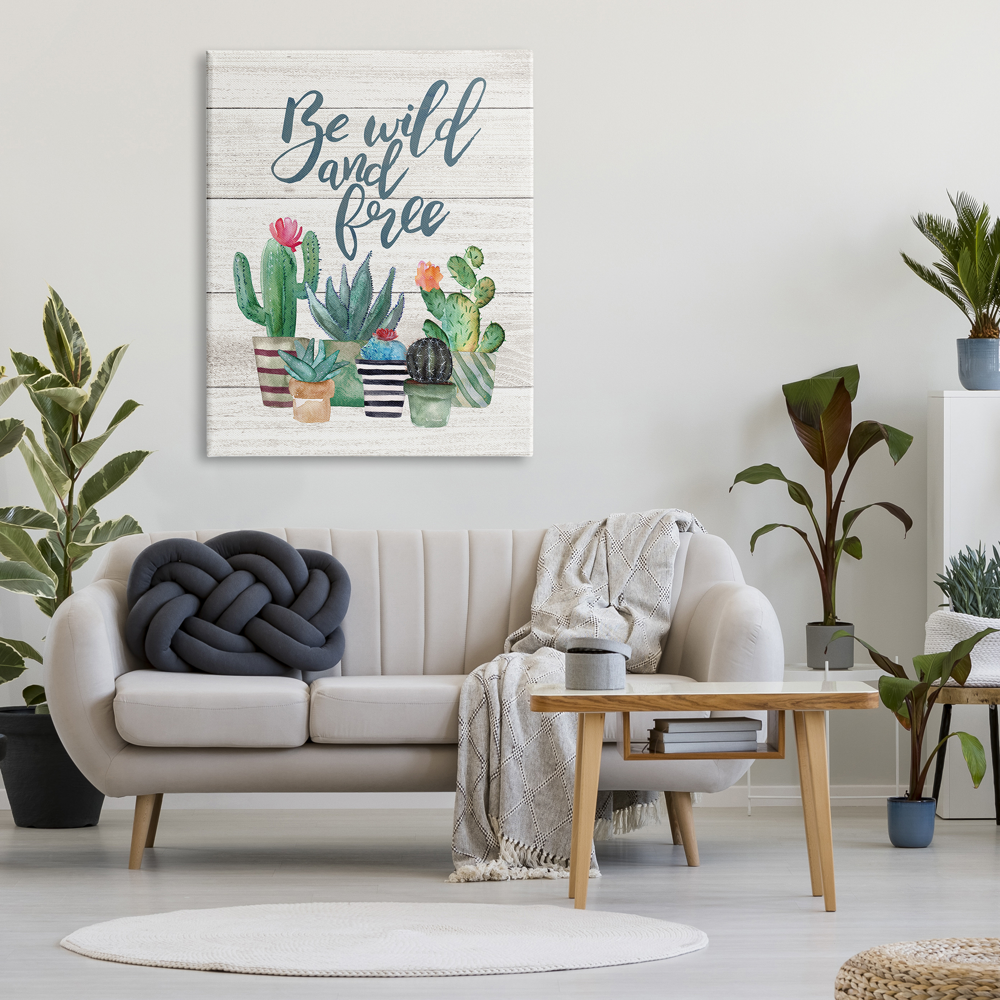 Stupell Industries Be Wild And Free Cactus Succulents Watercolor, 36 x 48,Design by Jo Moulton