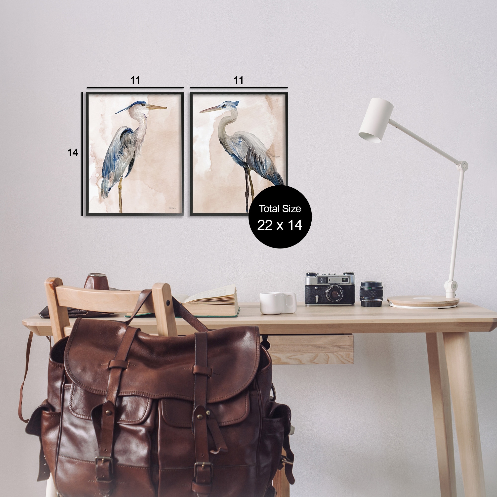 Dimensions: 2pc, each 16 x 1.5 x 20 Framed Wall Art is Ready to Hang – No Installation or Hardware Needed. For Easy Set Up Lean or Layer Artwork on Shelf or Against Wall Artwork Relates To: Bird; Animal; Waterfowl; Heron; Ardeidae; Beak; Painting, Watercolor Design by Stellar Design Studio