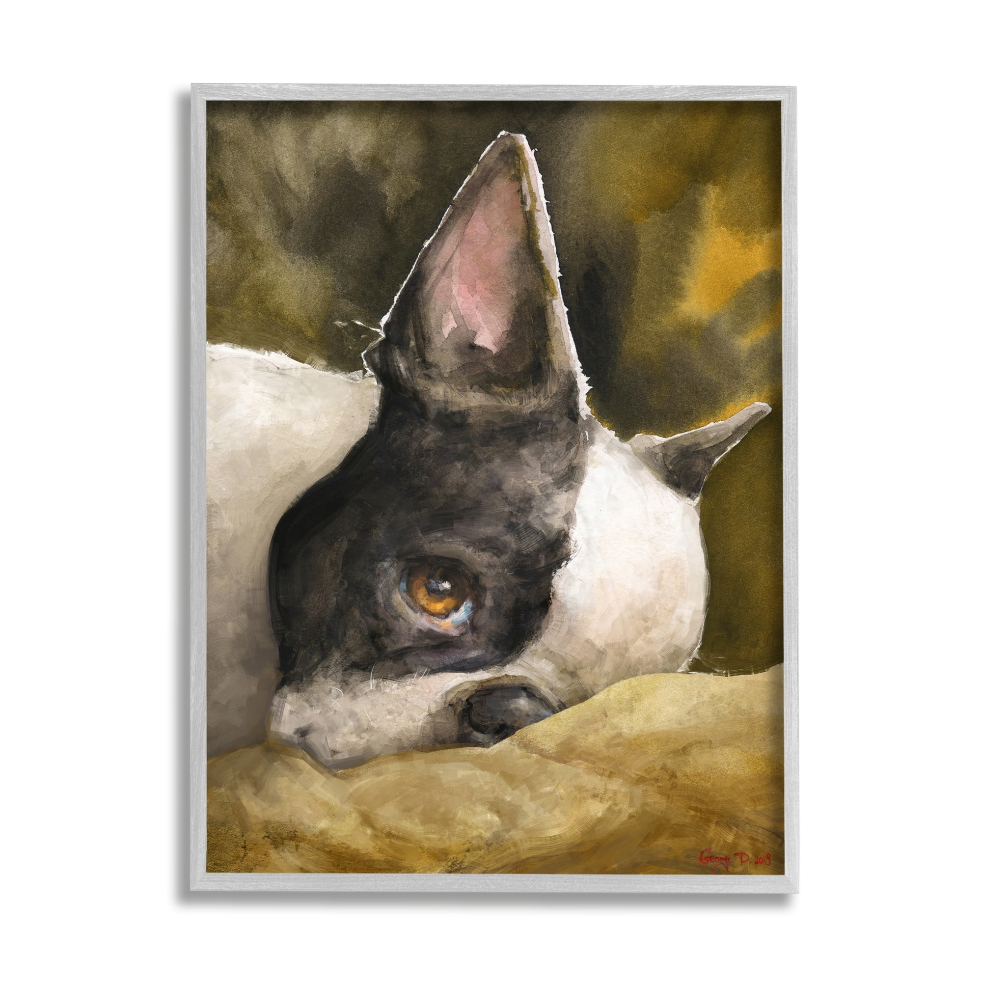 Stupell Industries Boston Terrier Resting Dog Pet Portrait Black Brown Black Framed, 24 x 30, Design by George Dyachenko