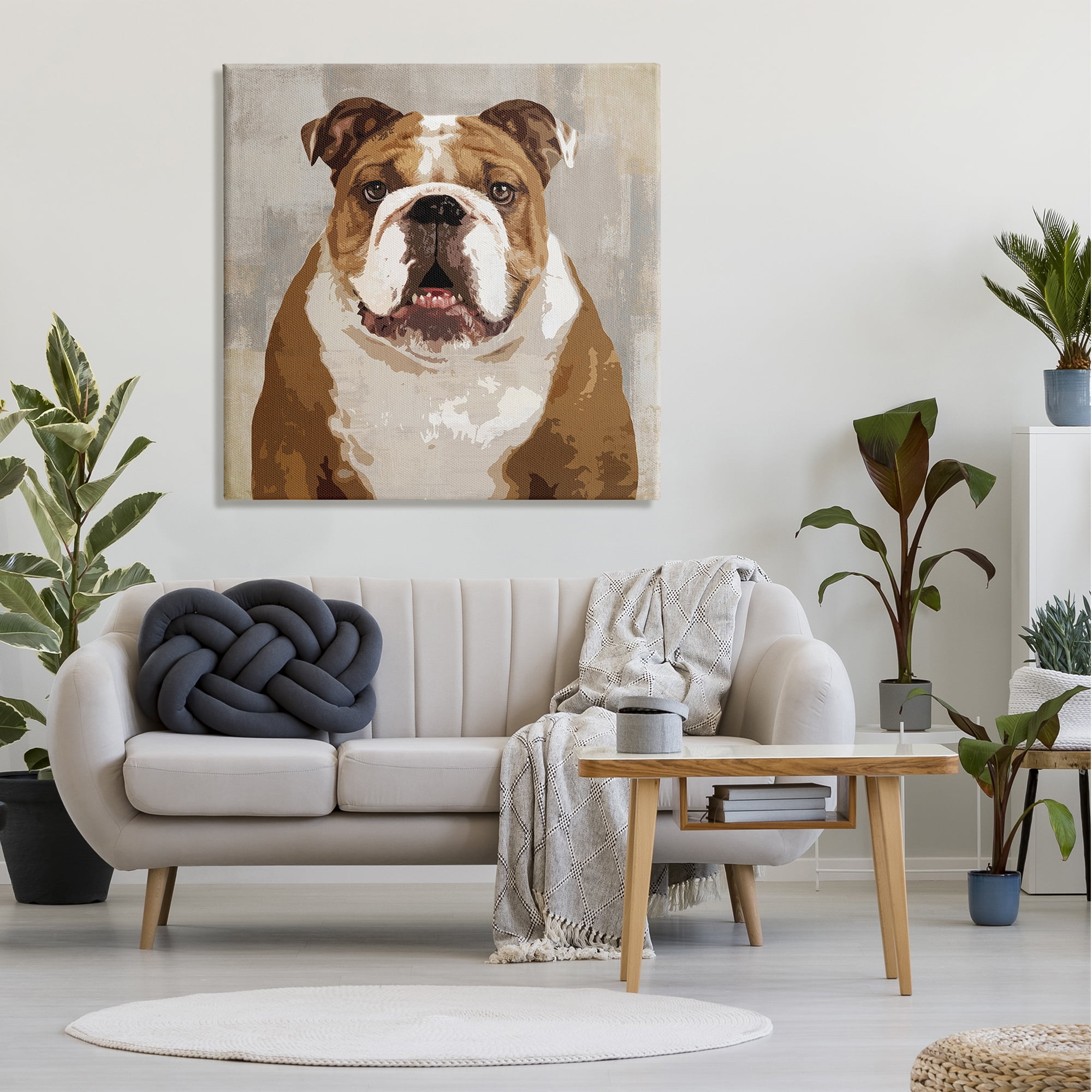 Stupell Industries Bulldog Hungrily Waiting Dull Abstract Background Pet Collage,36 x 36, Design by Keri Rodgers