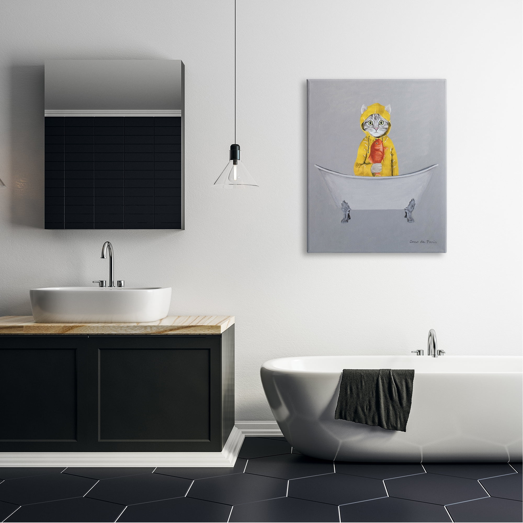 Stupell Industries Cat Fish Yellow Raincoat Claw Foot Bathtub , 30 x 40, Design by Coco de Paris