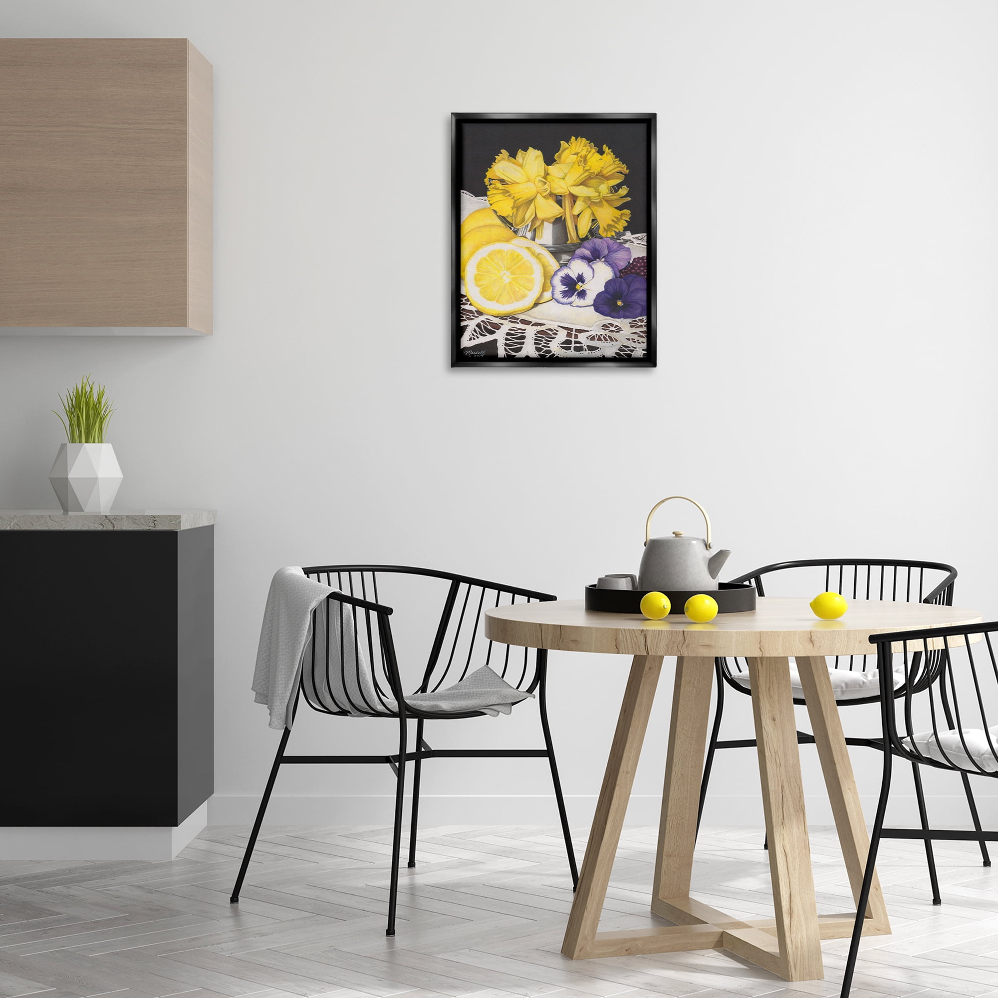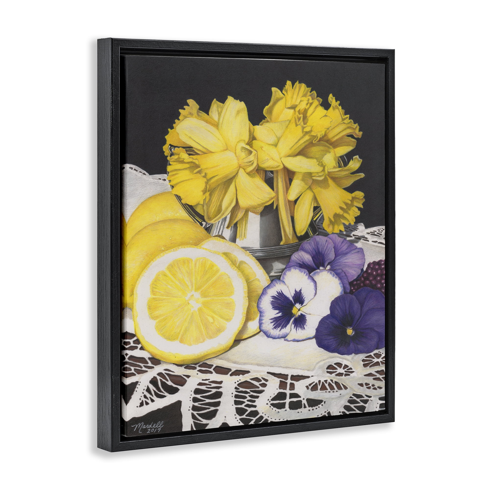 Stupell Industries Daffodils & Lemons Still Life Food & Beverage Painting Black Floater Framed Art Print Wall Art, 17 x 21