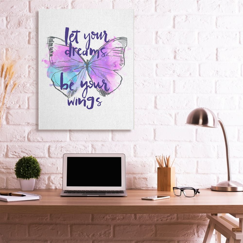 Stupell Industries Dreams Quote Purple Blue Butterfly Inspirational Sketch Canvas Wall Art Design by Jennifer Paxton Parker, 36″ x 48″