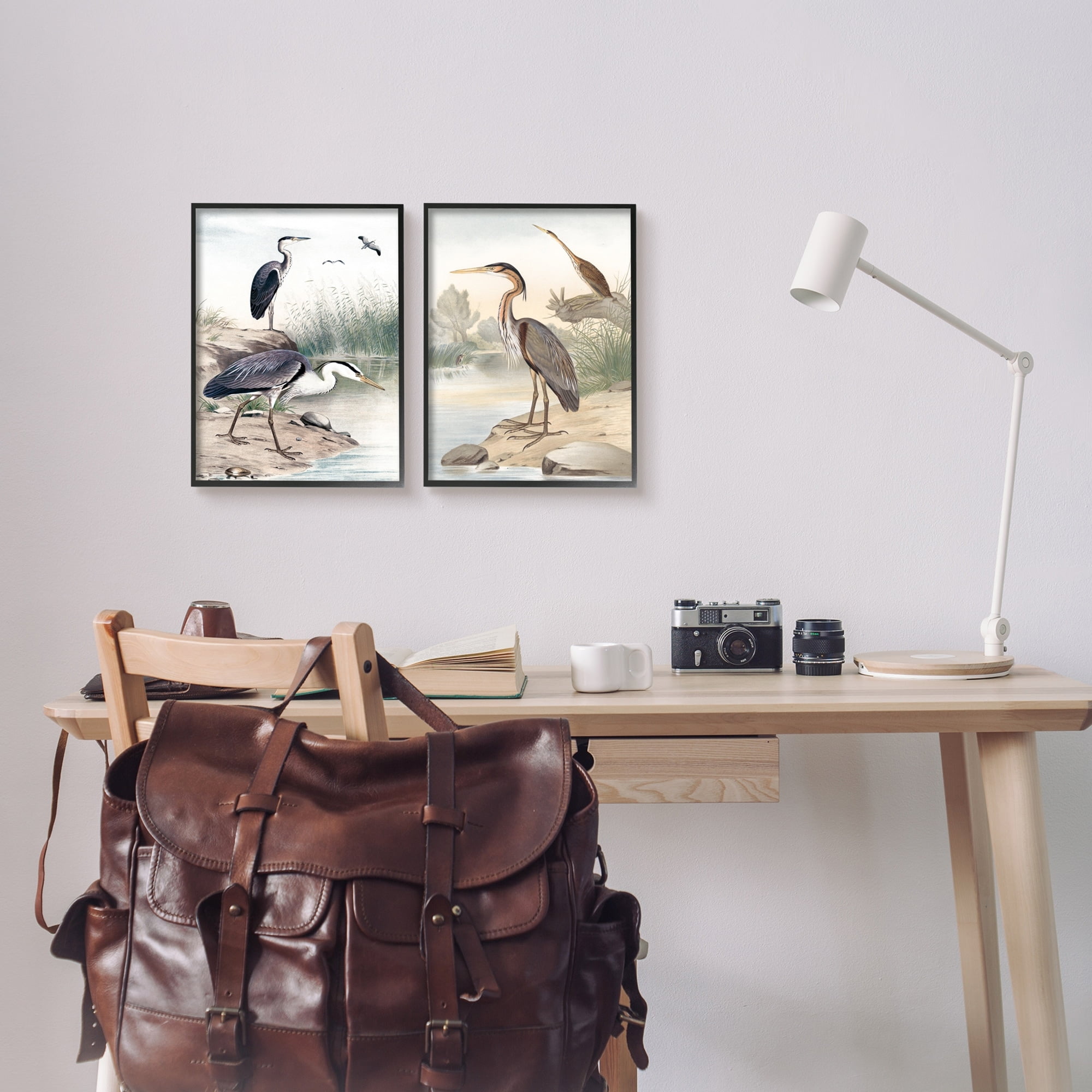 Dimensions: 2 Piece Set, Each Panel is 11 x 1.5 x 14 Framed Wall Art is Ready to Hang – No Installation or Hardware Needed. For Easy Set Up Lean or Layer Artwork on Shelf or Against Wall. Curated Wall Art Sets make it easy for you complete the theme for any room. Our giclée prints are carefully mounted on a durable MDF backing, and then perfectly finished in a 1.5 inch thick woodgrain frame. Mounted frame colors include black, gray farmhouse and white. Artwork Relates To: Waterfowl; Bird; Animal; Heron; Beak, Water Design by Piddix