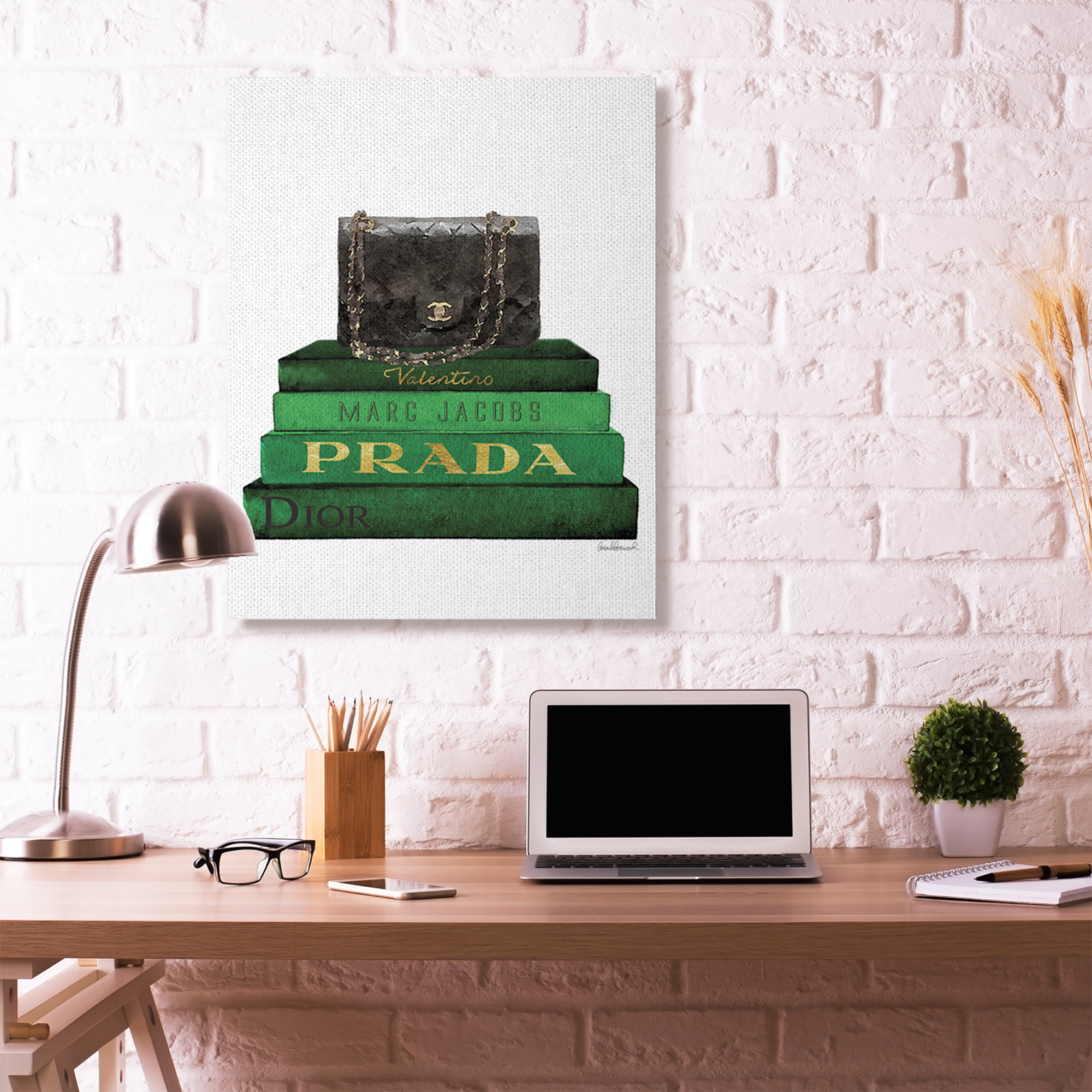 Stupell Industries Fashion Designer Purse Bookstack Green Black Watercolor Canvas Wall Art by Amanda Greenwood