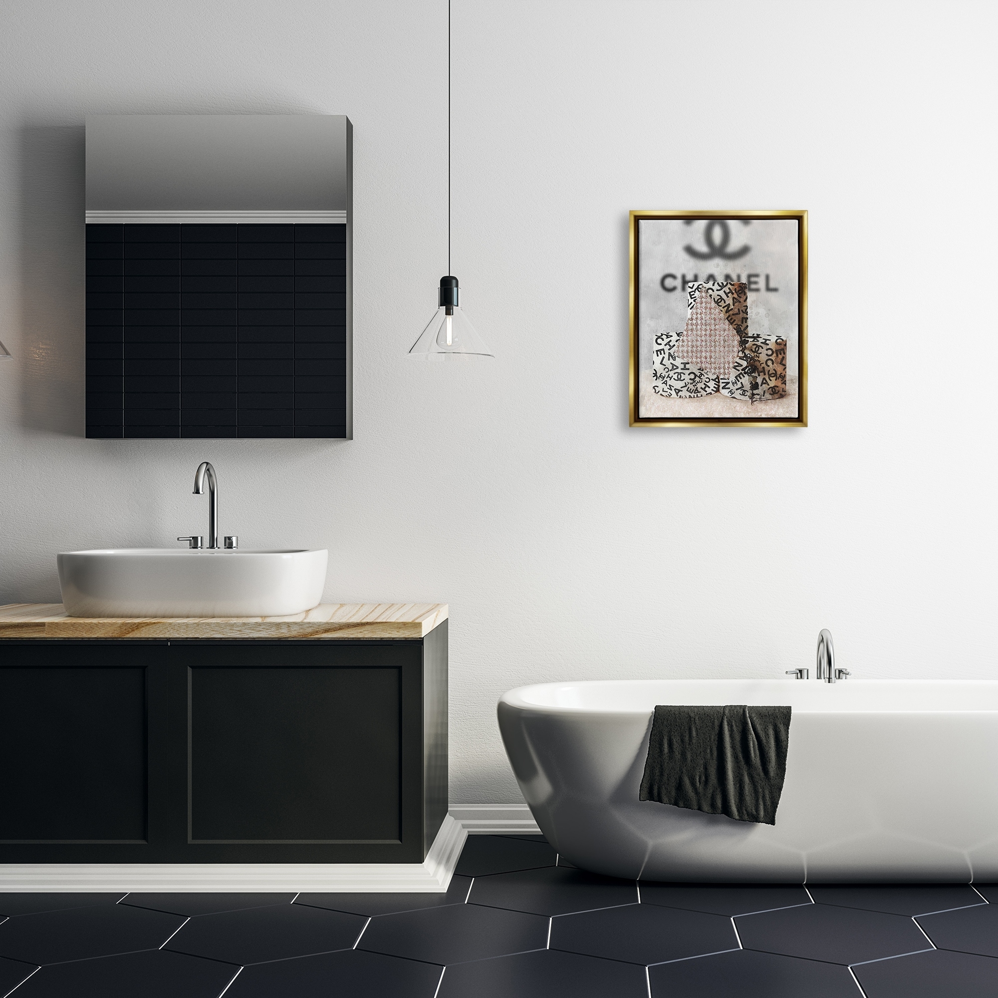 Stupell Industries Fashion Forward Toilet Paper Designer Detail Jet Black Framed Floating Canvas Wall Art, 16×20, by Ziwei Li
