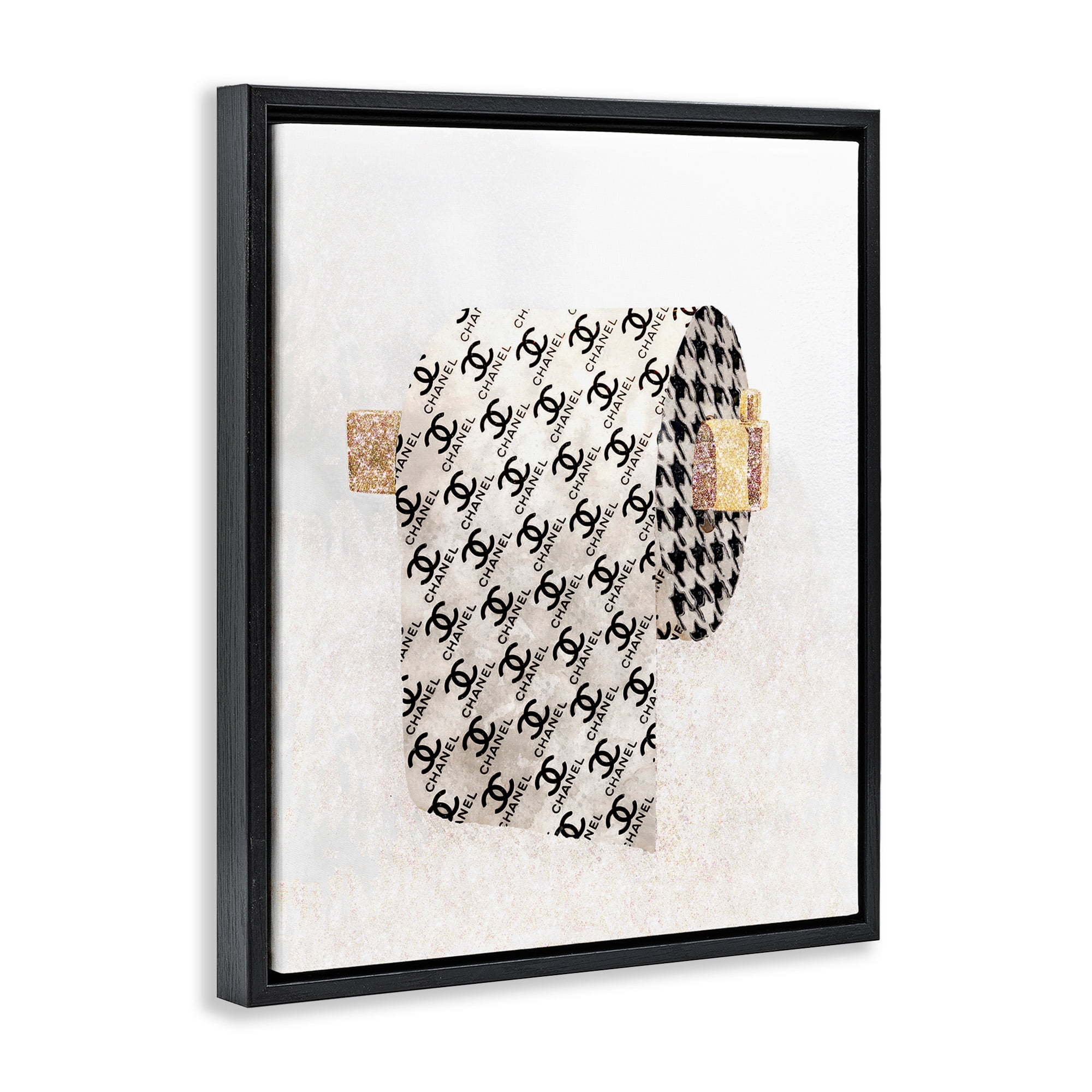 Stupell Industries Fashion Glam Toilet Paper Designer Detailing Jet Black Framed Floating Canvas Wall Art, 16×20, by Ziwei Li
