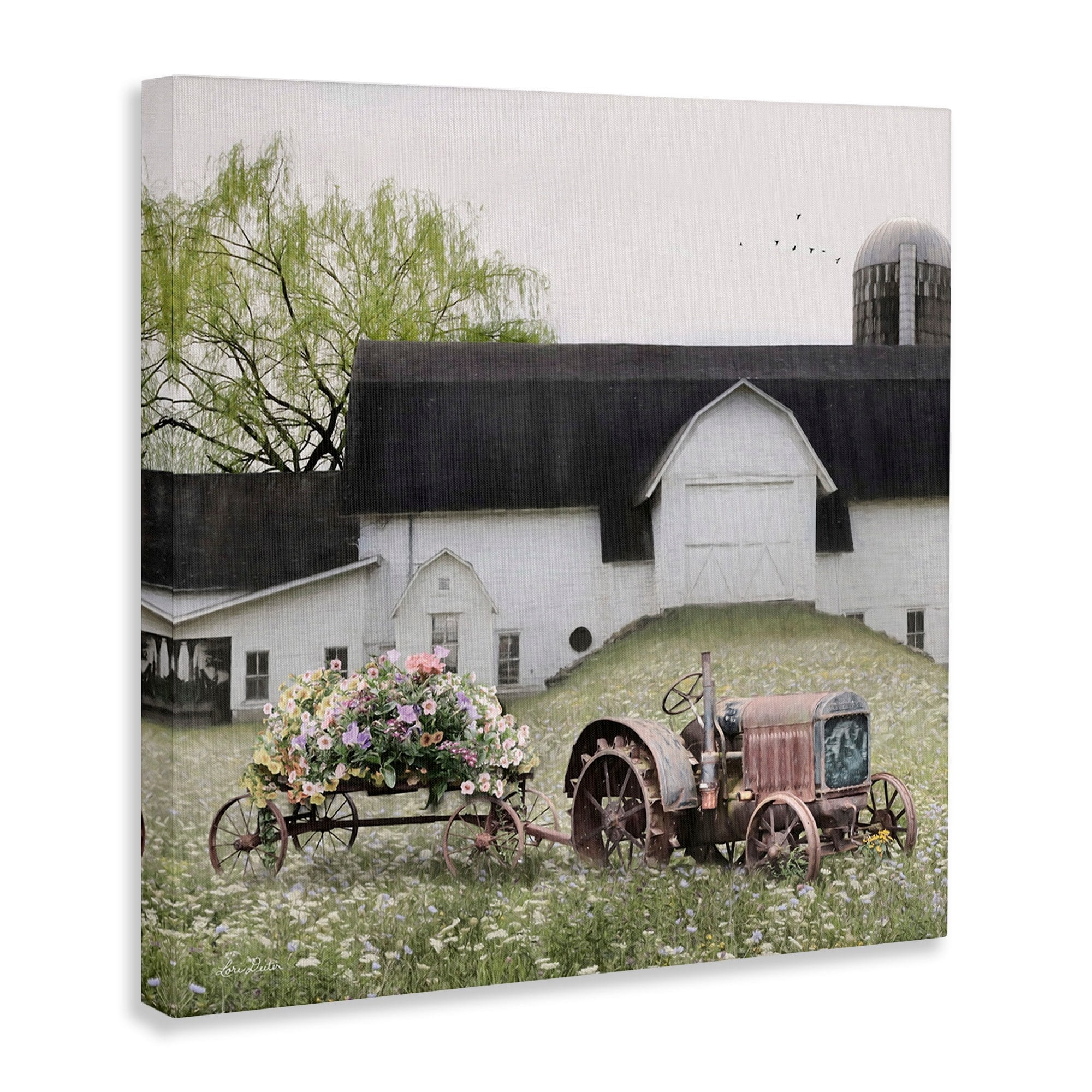 Stupell Industries Floral Bouquet Tractor Flower Field Barn Farmhouse , 30 x 30, Design by Lori Deiter