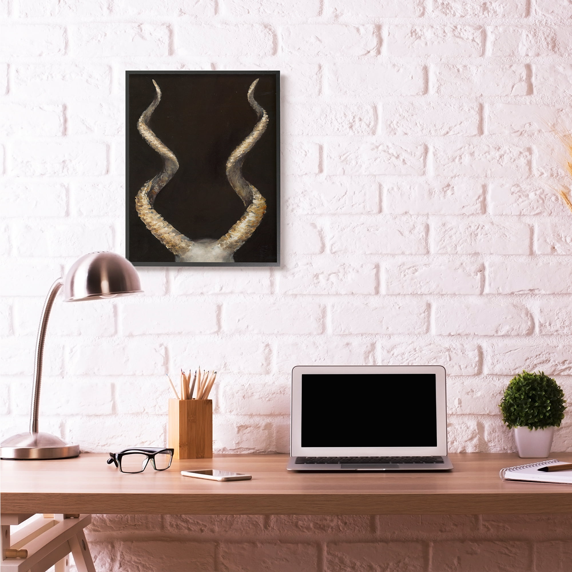 Stupell Industries Goat Horns Shadow Black Gold Animal Painting Black Framed Art Print Wall Art, 24×30, by Third and Wall