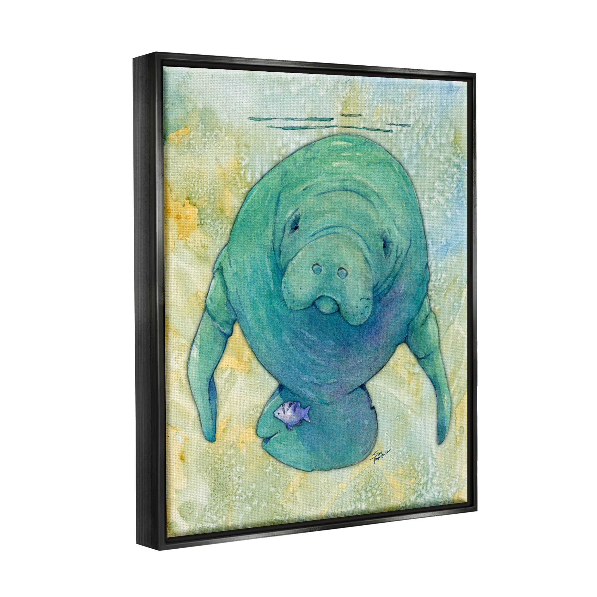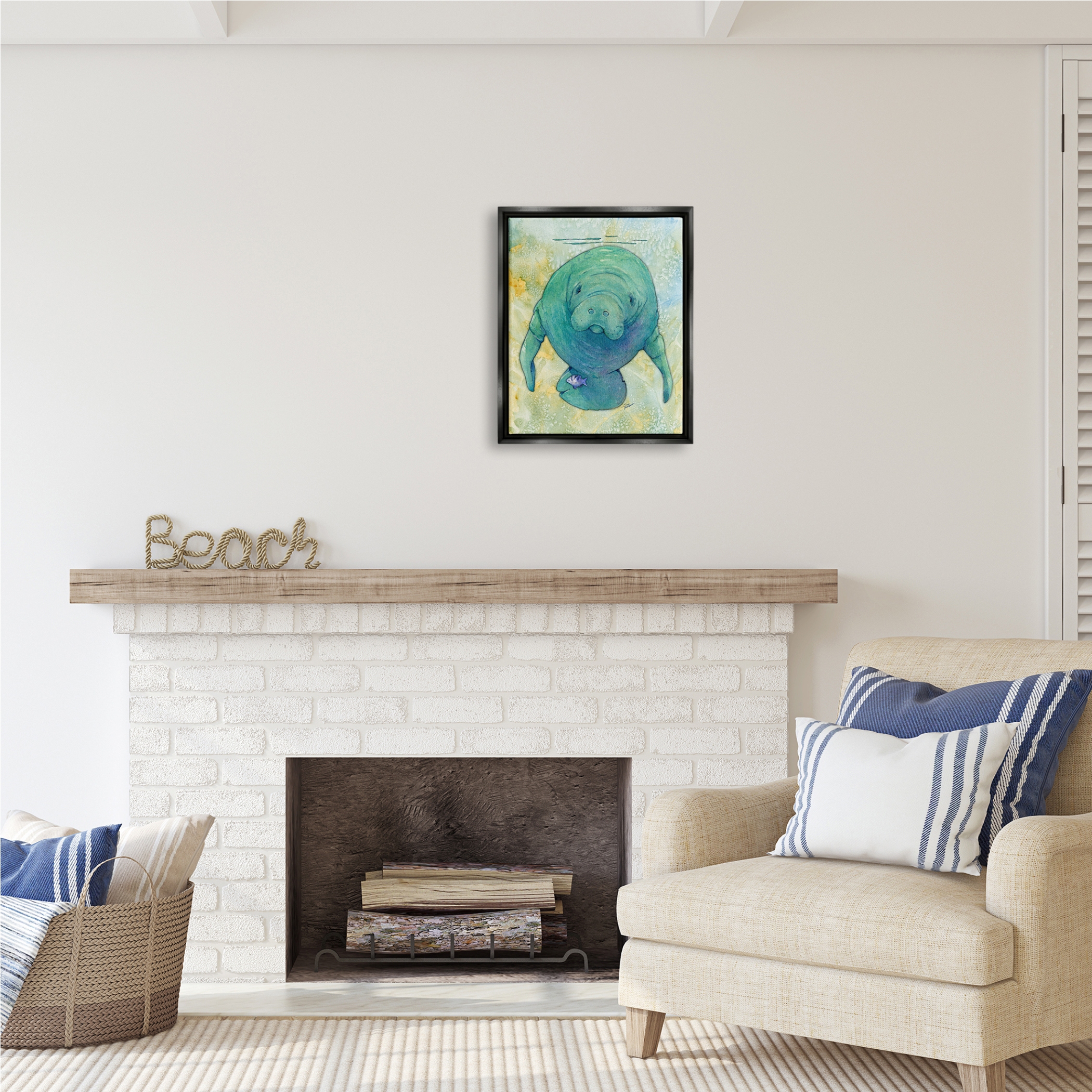 Stupell Industries Green Manatee Underwater Animals & Insects Painting Black Floater Framed Art Print Wall Art, 17 x 21