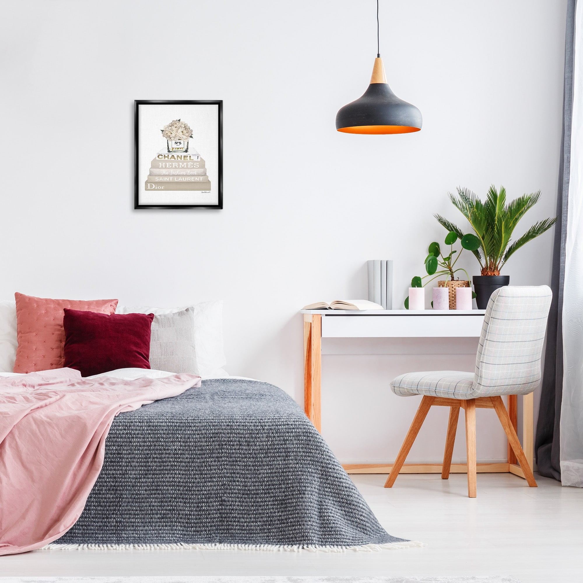 Stupell Industries High Fashion Bookstack with Tan Flowers Jet Black Framed Floating Canvas Wall Art, 16×20, by Amanda Greenwood