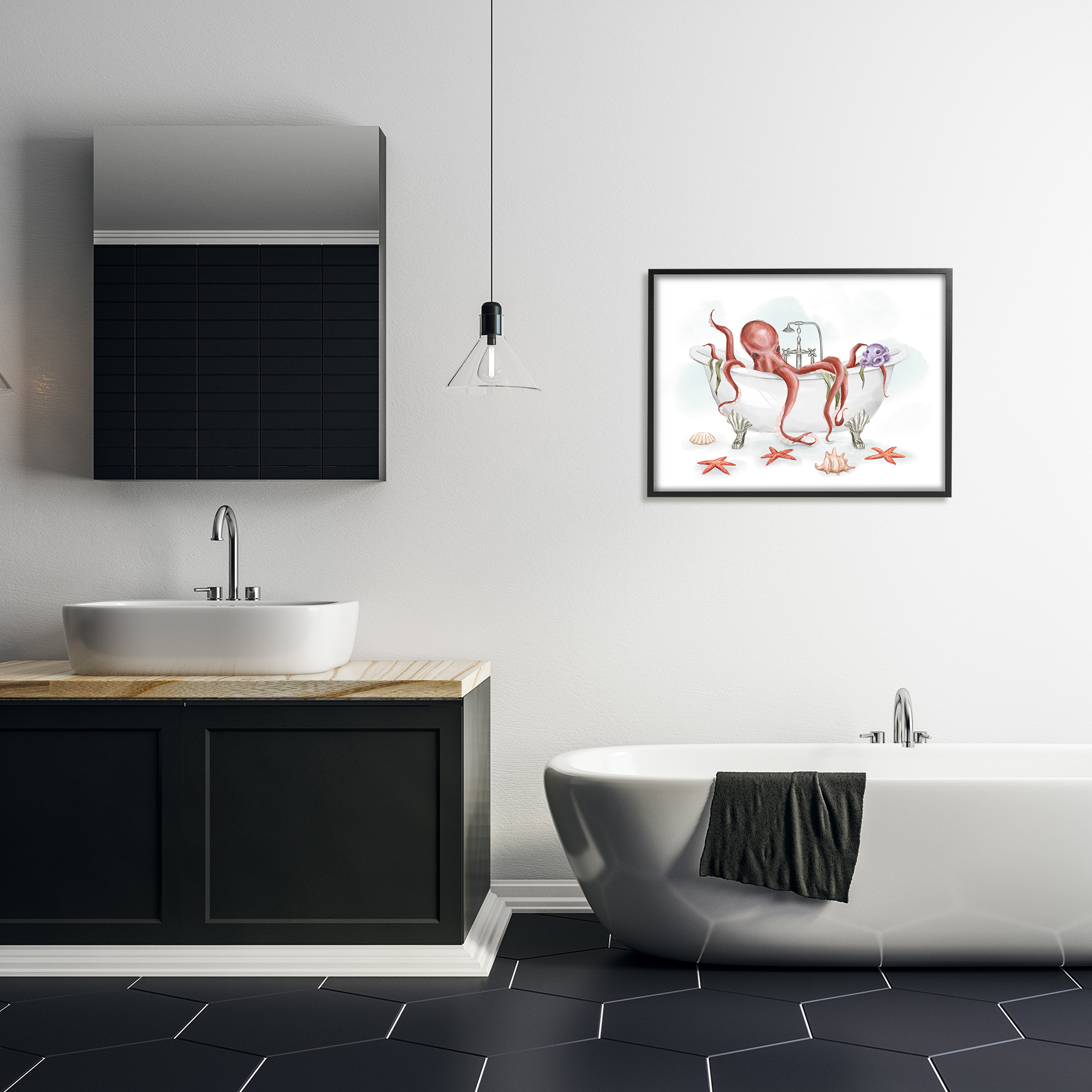 Stupell Industries Red Octopus Nautical Claw Bath Sea Shells, 24 x 30, Designed by Ziwei Li