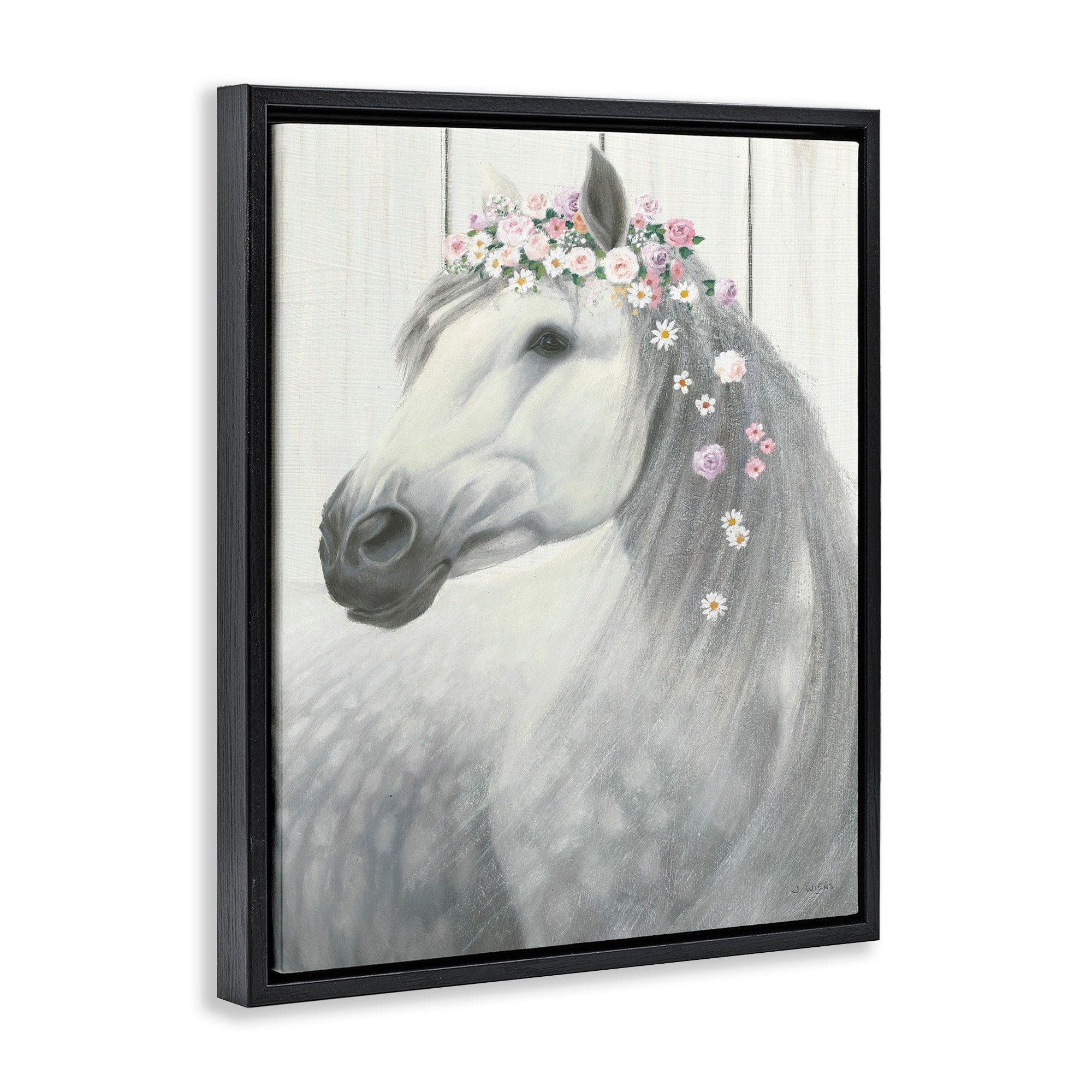 Stupell Industries Spirit Stallion Horse with Flower Crown Jet Black Framed Floating Canvas Wall Art, 16×20, by James Wiens