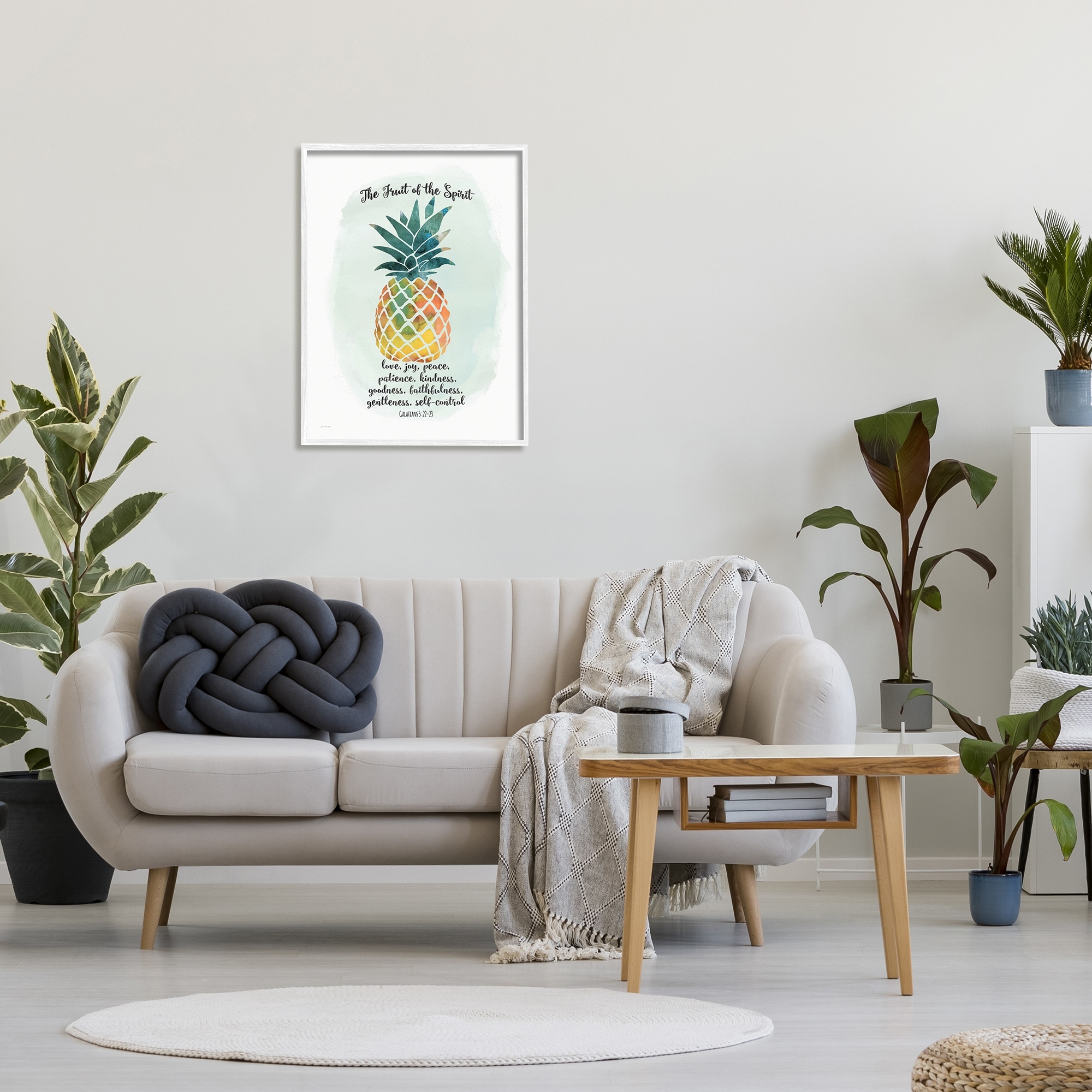 Stupell Industries The Fruit of the Spirit Multicolored Pineapple Graphic Art White Framed Art Print Wall Art, 24×30, by Jo Moulton