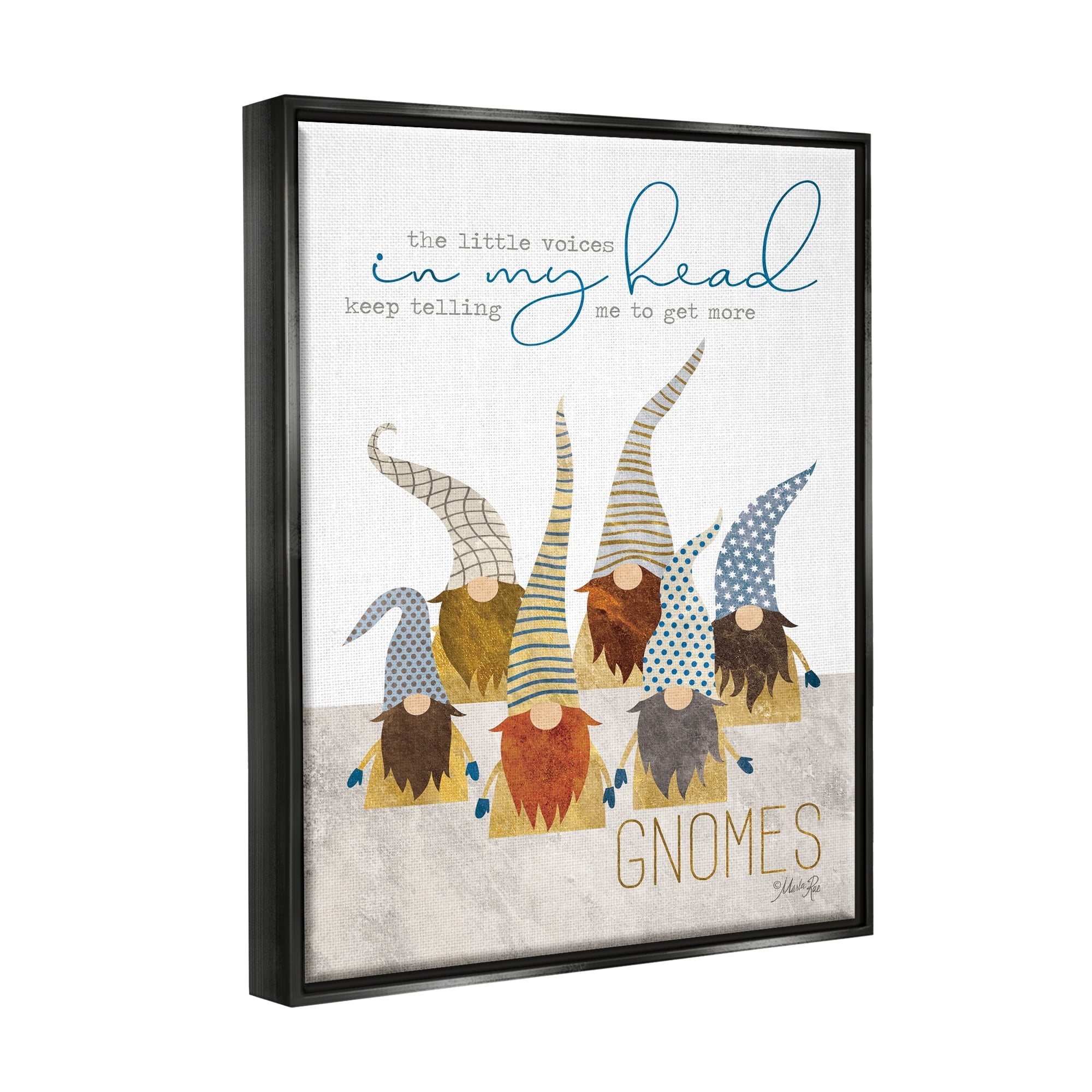 Stupell Industries Voices Inside My Head Home Gardener Gnome Quote Jet Black Framed Floating Canvas Wall Art, 16×20, by Marla Rae