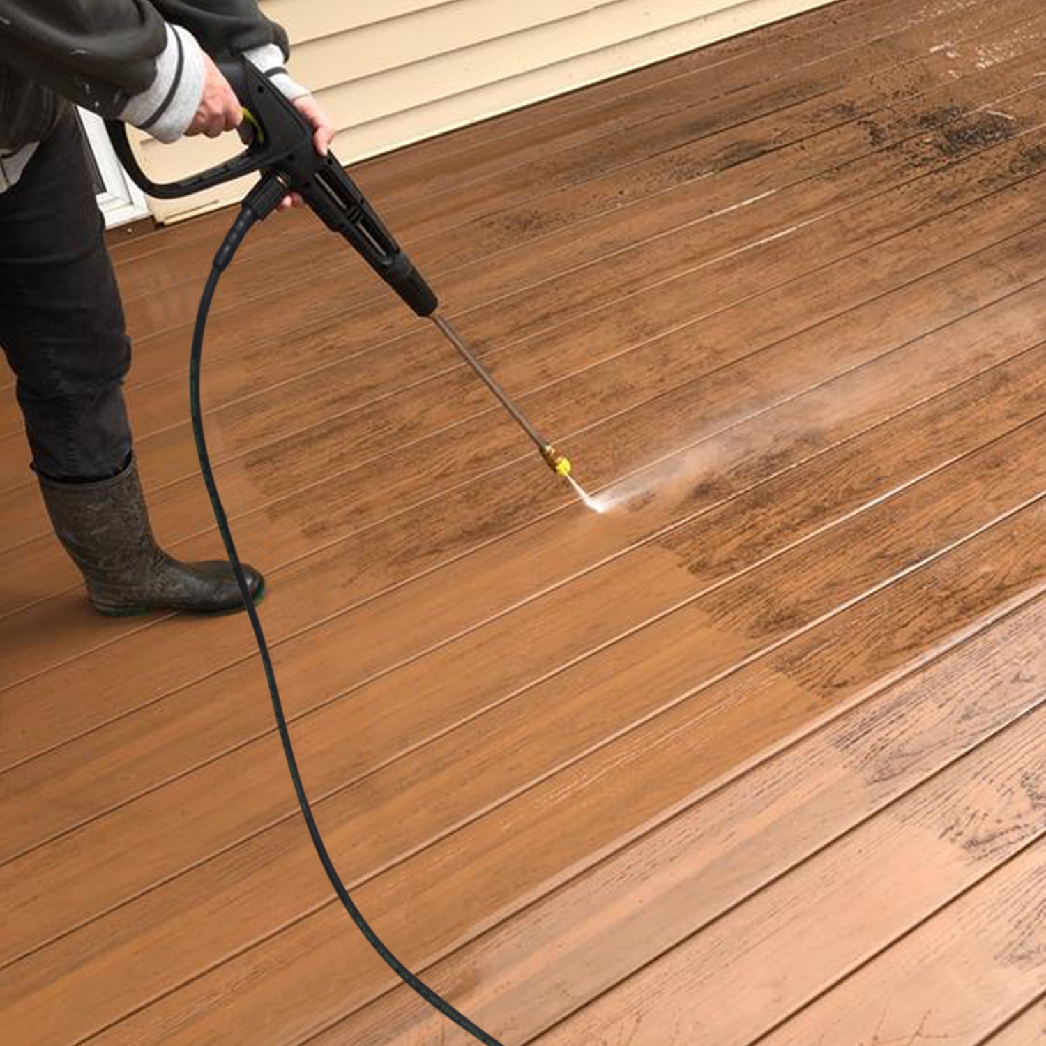 STYDDI Hot and Cold Water High Pressure Washer Hose with Brass Coupler for Extension A great hose that makes all the difference to meeting your pressure washer expectations. Hose is one of the most crucial parts of a pressure washer. It?s the component that delivers water to the target object or surface. So having a good pressure washer hose is important and essential for achieving an ideal cleaning effect. Here we present a heavy-duty pressure washer hose especially designed for both cold and hot water. It is 50 feet in length and 1/4″ in diameter. Made of high-tensile braided steel wire and rubber, this hose is ultimate abrasion resistance and kink resistance. Features with universal M22-15mm thread, it is compatible with most high pressure washer and guns. A brass coupler is contained for extending the hose. It make it so you don?t have to move your pressure washer all the time as you have more leeway with the longer hose. This pressure washer hose allows you to deep clean your house?s exterior, vehicles and more, without the need to scrub manually and get your hands dirty. You deserve to have it! Specification: Hose Length: 50FT Hose Diameter: 1/4 Inch Material: Rubber and Steel Wire Braided Connections: M22-15mm Thread Maximum Working Pressure: 2900 PSI Maximum Working Temperature: 212°F Color: Black