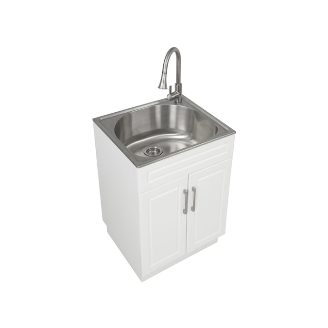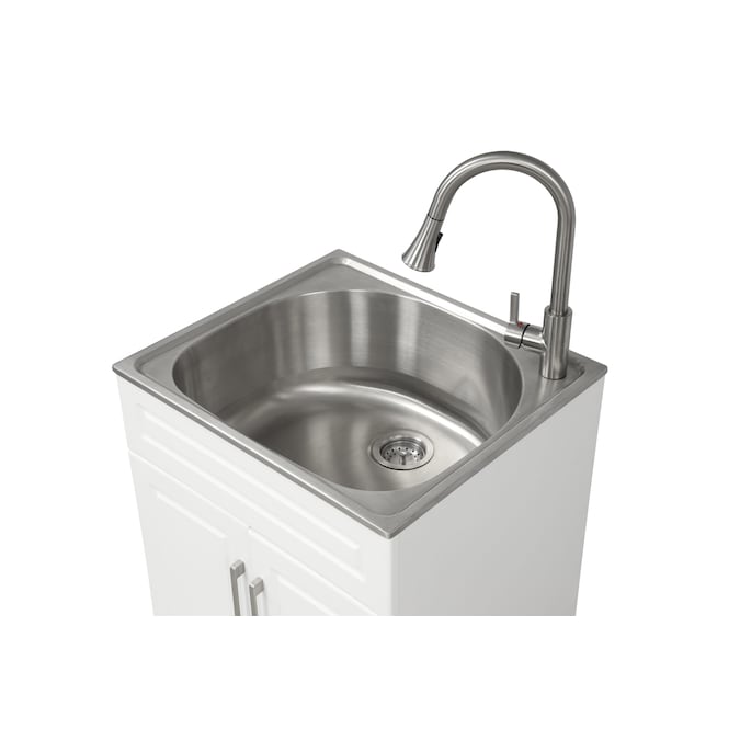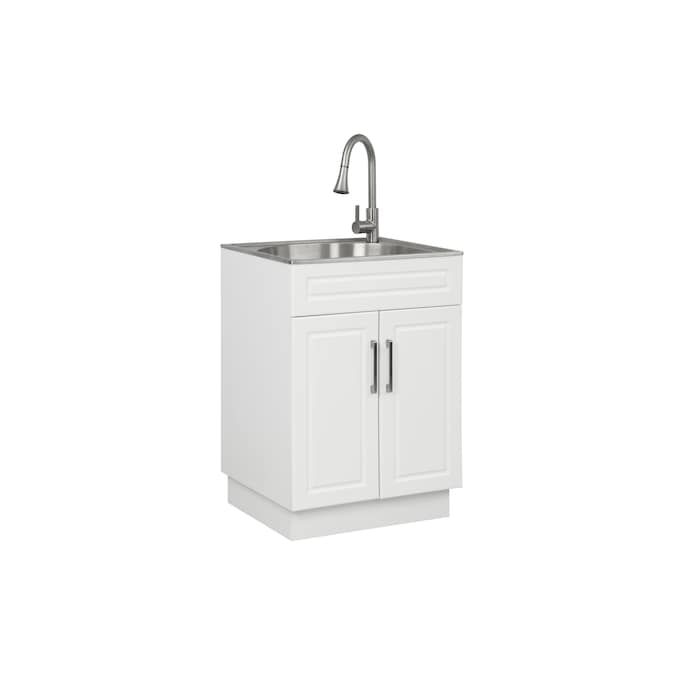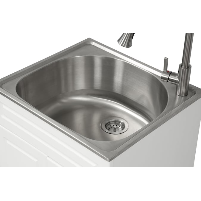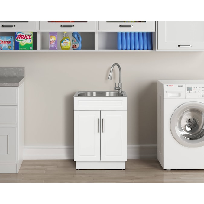 - This Style Selections Utility Tub is an all-in-one freestanding laundry cabinet which provide a perfect sink for washing large item, while also have a large storage space