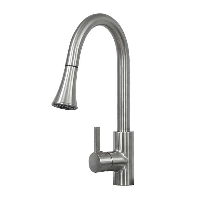 - It includes the featured 10-in deep stainless steel sink comes with basket strainer, and a brushed nickel single lever pull down faucet with dual spray pattern.