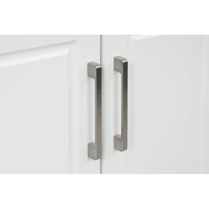 - Soft-closing doors with brushed nickel handles; Scratch resistant white finish.