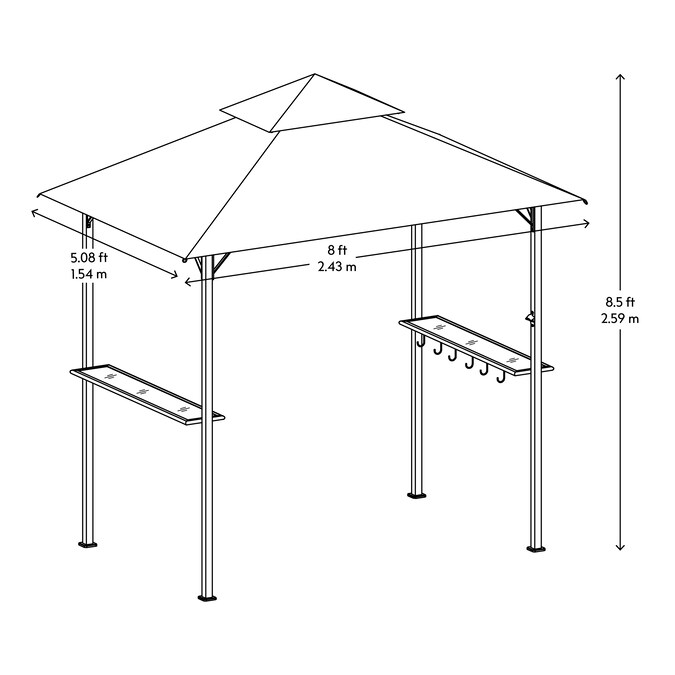 Don’t let rain or the hot sun ruin your grilling! This grill gazebo by Outsider gives you the perfect canopy for enjoying your cooking in shade or in a light rain. With a weather- and flame-resistant canopy and thick, sturdy posts this grill gazebo is truly the ultimate in grill protection and convenience. The shelf with integrated hooks on one side gives you an easy-access area for plates, tongs, forks, sauces, and other grilling accessories, making this grill gazebo the perfect choice for enjoying cooking like an Outsider!
