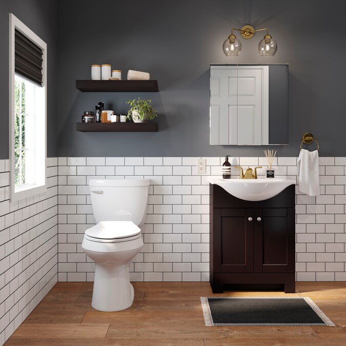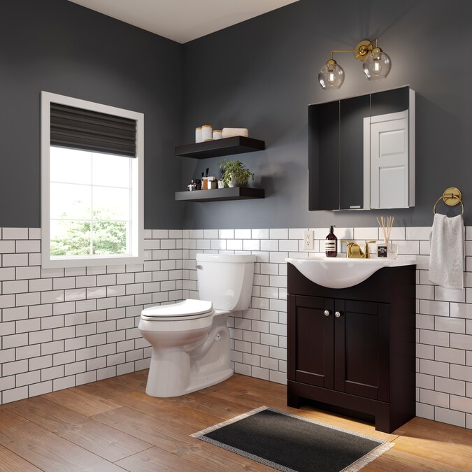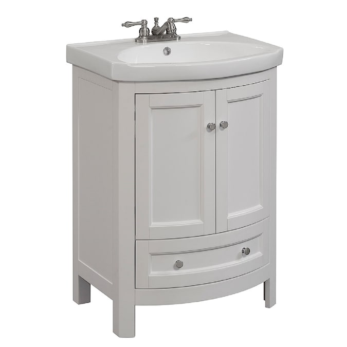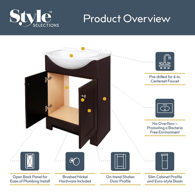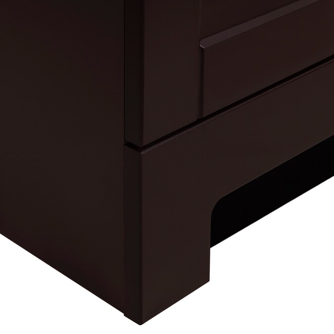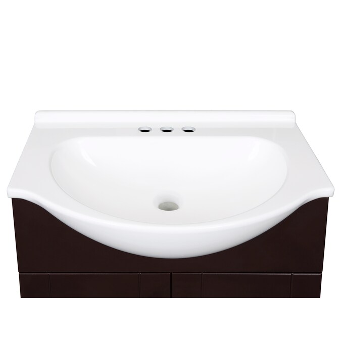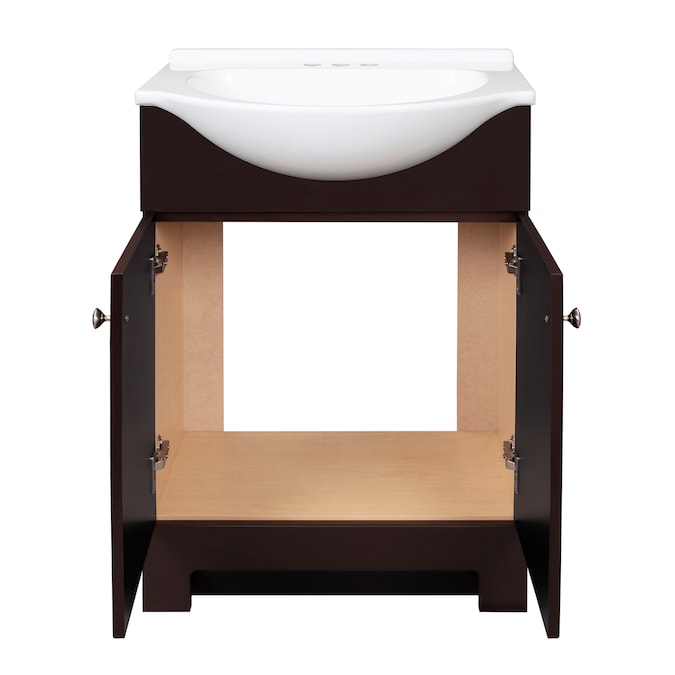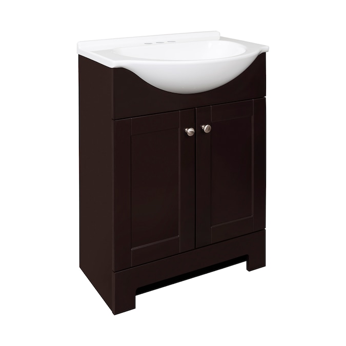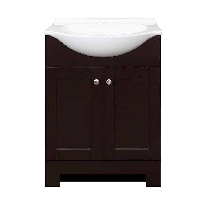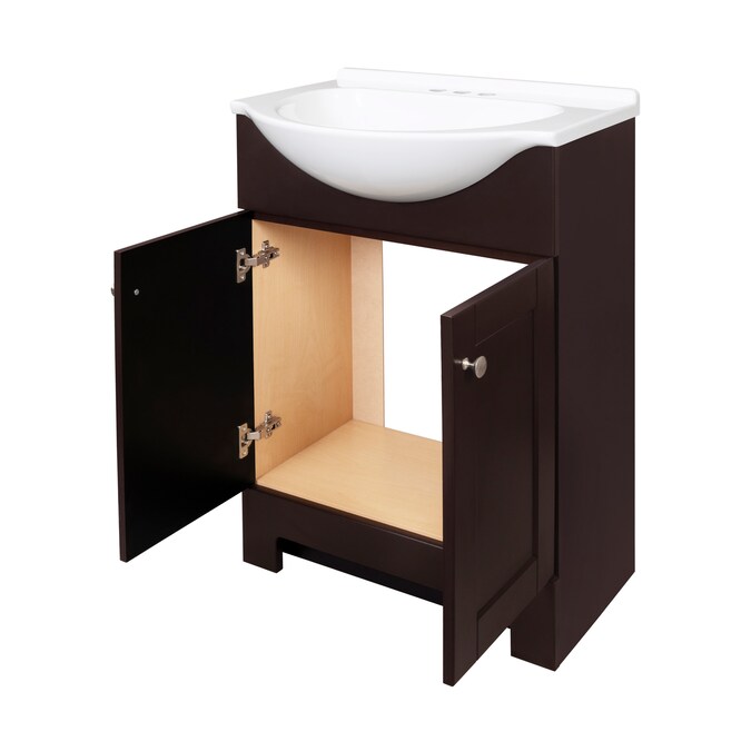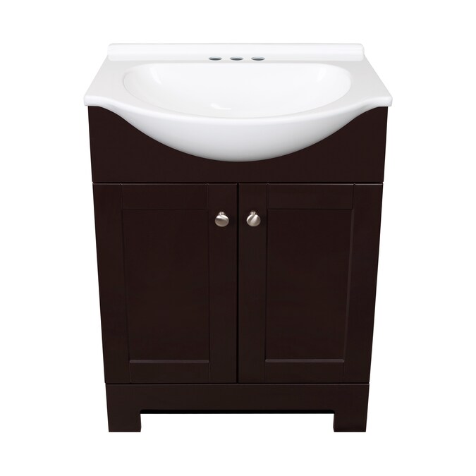 Tastefully conceal toiletries in this bathroom vanity from the Euro collection. Its espresso finish, thick, cultured marble top and minimal design enhance a variety of paint colors and bring a touch of brightness to your decor. Two doors with adjustable concealed hinges and satin nickel finish hardware allows you to store bath products under the sink, keeping your powder room clean and organized. A furniture-style toe kick opens up floor space, and European-inspired frameless construction allows for easy installation. At 24.5-in wide x 18.09-in deep, this fully assembled vanity offers additional storage without overwhelming your bath. Great for classic and transitional style bathrooms and powder rooms.