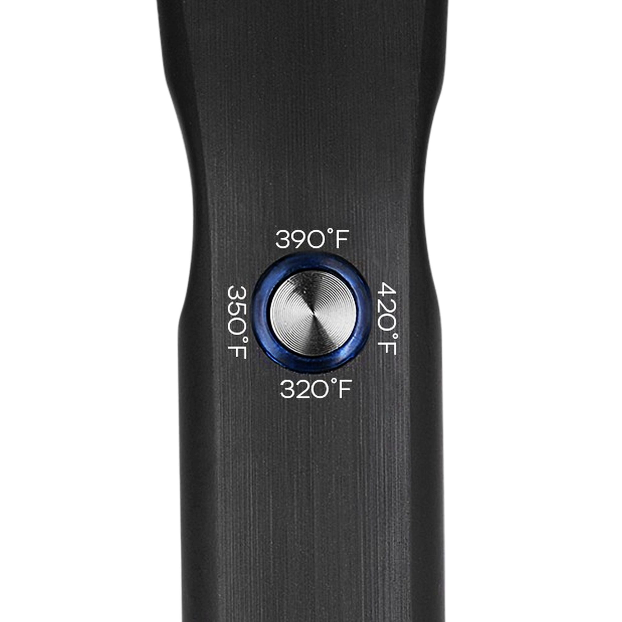 4 HEAT SETTINGS 320°F, 350°F, 390°F & 420°F with flashing indicator light while heating up to desired temperature and solid light once temperature is achieved COOL TOUCH BRISTLE TIPS for safety, will not burn your fingers, scalp or skin SLIM ERGONOMIC DESIGN with a smooth matte finish for easy grip AUTO SHUT-OFF safety feature 8 FT PROFESSIONAL length 360° swivel cord for easy mobility when styling