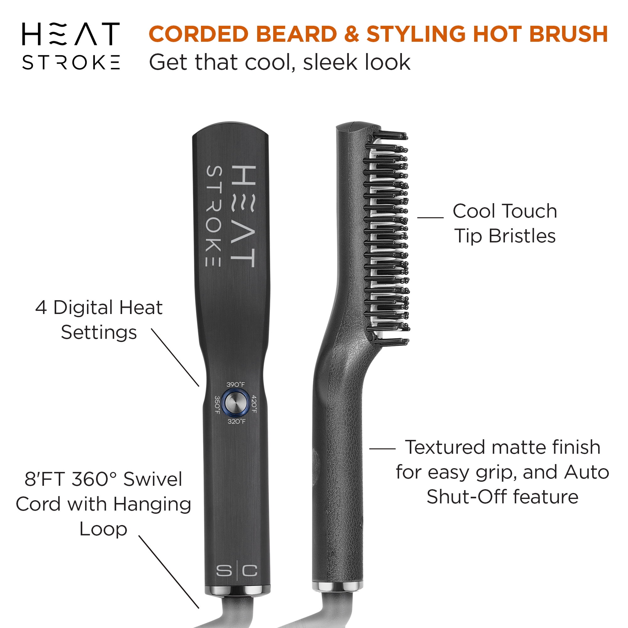 StyleCraft Heat Stroke Corded Beard Brush with Anti-Slip, Frizz Control, and Accessories