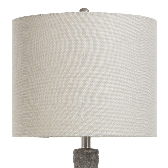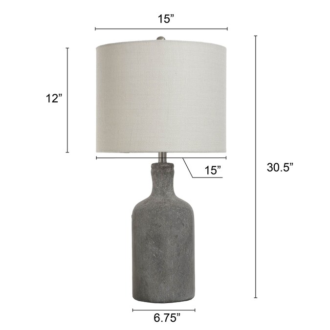 Featuring a textured off white linen shade that enhances the appearance of the rugged concrete frame with its numerous tones of dark gray, the Olney Table Lamp is the highlight of any space. The numerous tactile elements of this fixture give it an eclectic appeal. With its versatile three-way bulb and neutral color palette, this lamp is ready to bring stylish illumination to a nightstand or tabletop.