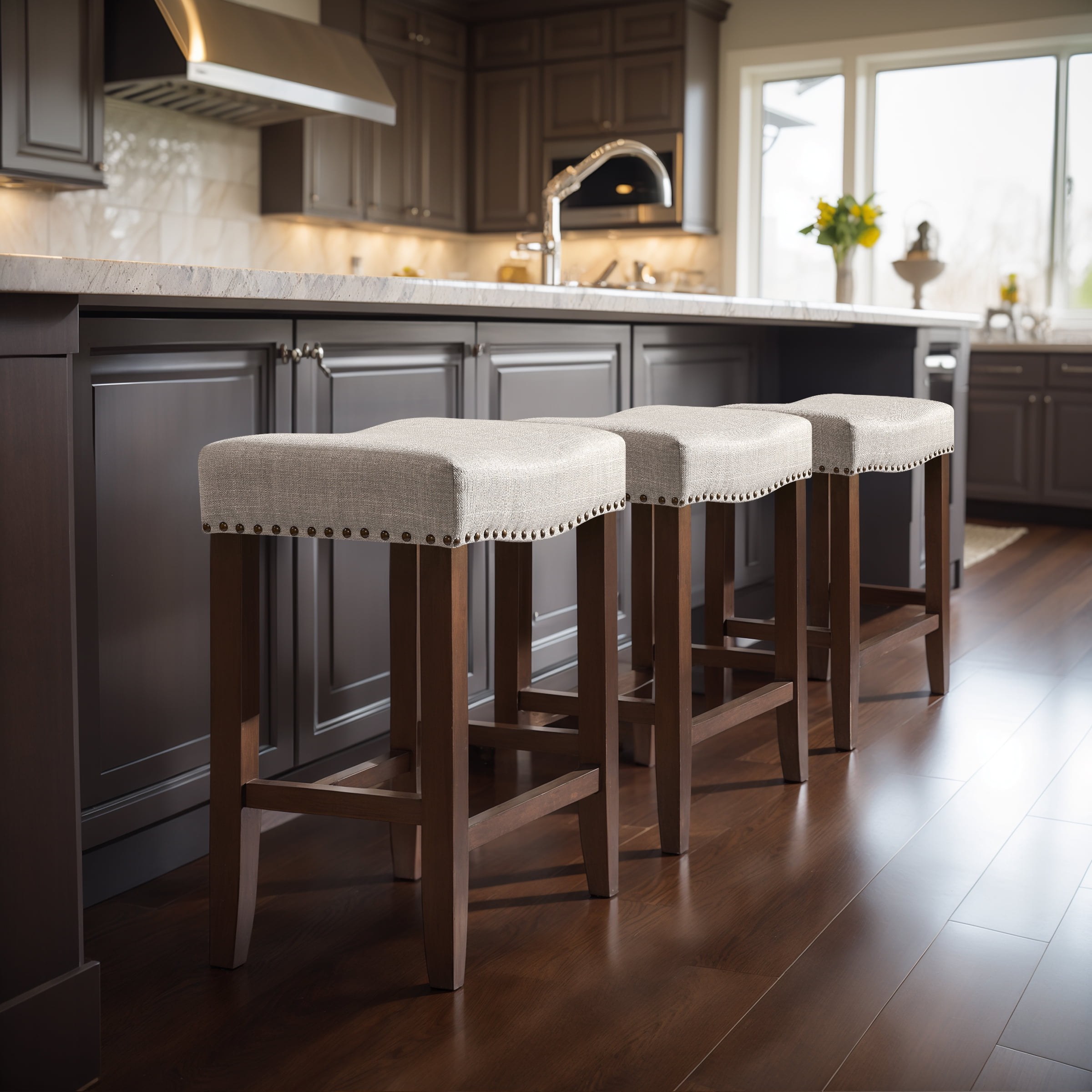 Multiple Sizes & Colors Available: Choose from two convenient sizes: 24-inch counter height or 29-inch bar height. Available in classic Black, elegant White, and modern Gray to match any kitchen or bar décor. Stylish Saddle Seat Design: Features a sleek saddle-style seat that enhances both comfort and aesthetics, making this backless bar stool a stylish addition to your kitchen island, breakfast nook, or home bar. Sturdy Solid Rubberwood Frame: Built with a premium solid rubberwood frame, this saddle stool offers excellent durability, strong weight support, and long-lasting performance. Comfortable and Supportive: Designed with a thick, high-density foam cushion and integrated footrest, this wood upholstered saddle stool provides a cozy seating experience for extended use. Easy Assembly & Floor Protection: Assembles in minutes with clear, step-by-step instructions. Each leg is equipped with protective footpads to prevent floor scratches and minimize noise. Note: For safety reasons, please tighten the screws regularly after using them for a period of time
