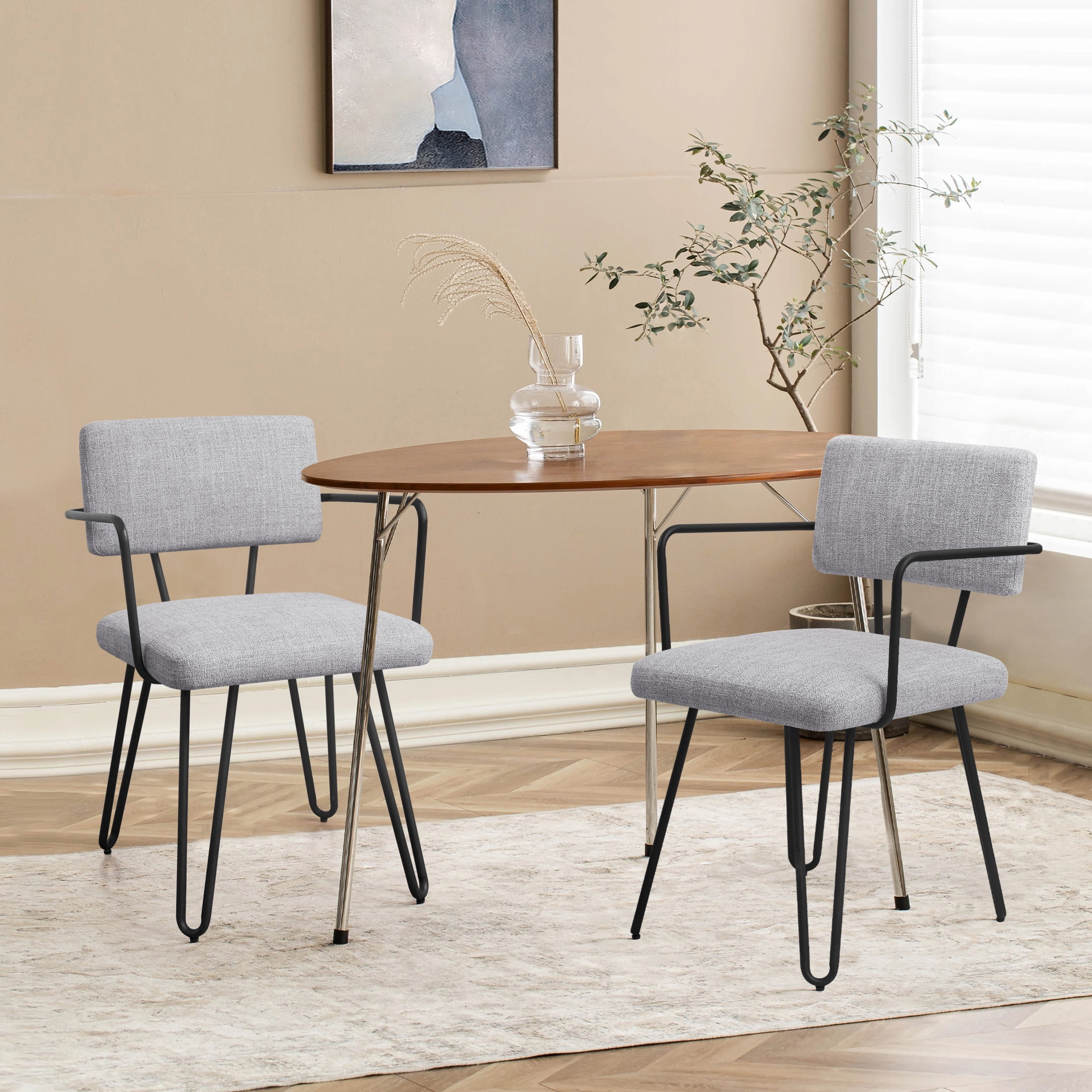 Subrtex Dining Chairs Set of 2, Modern Dining Room Chairs with Metal Arms, Gray
