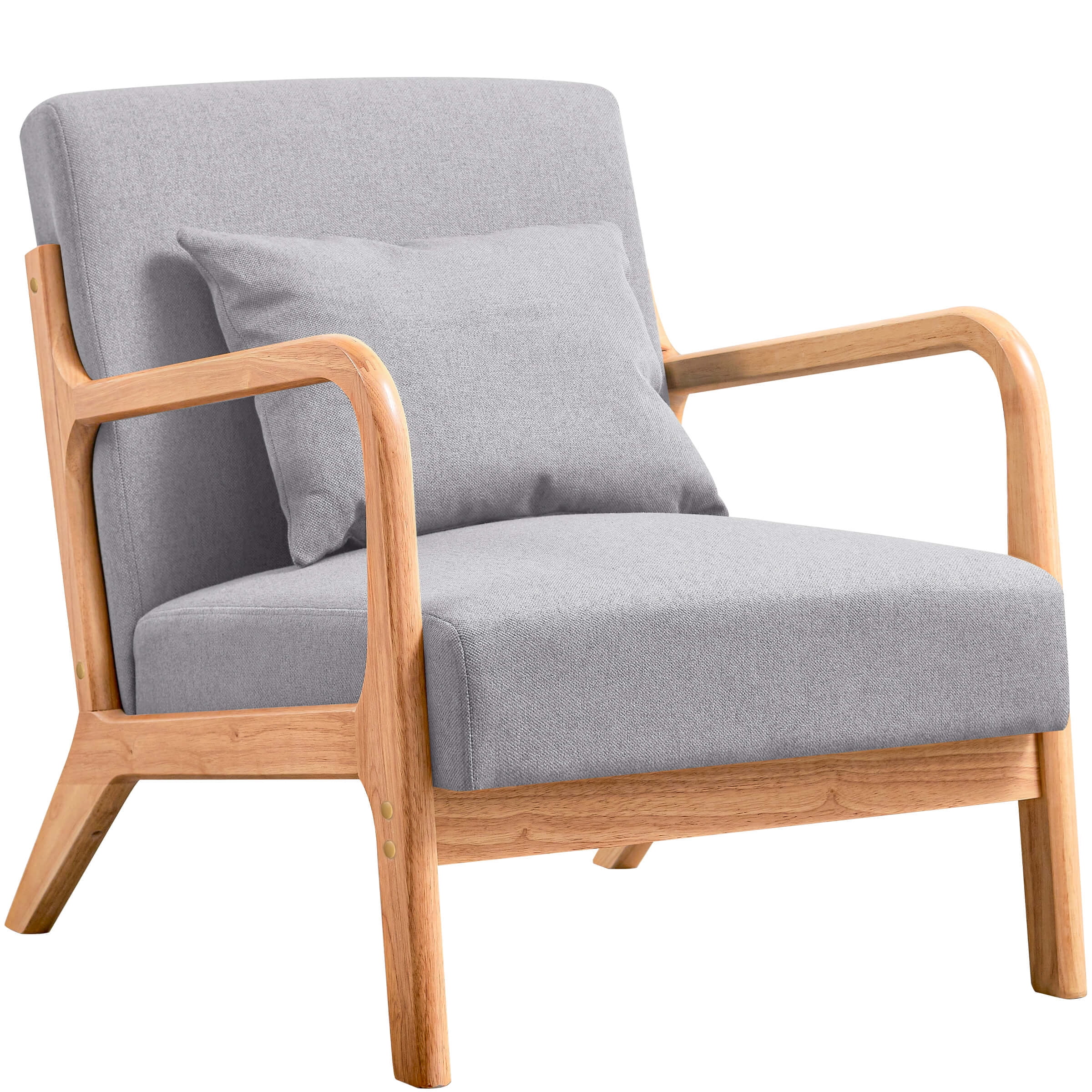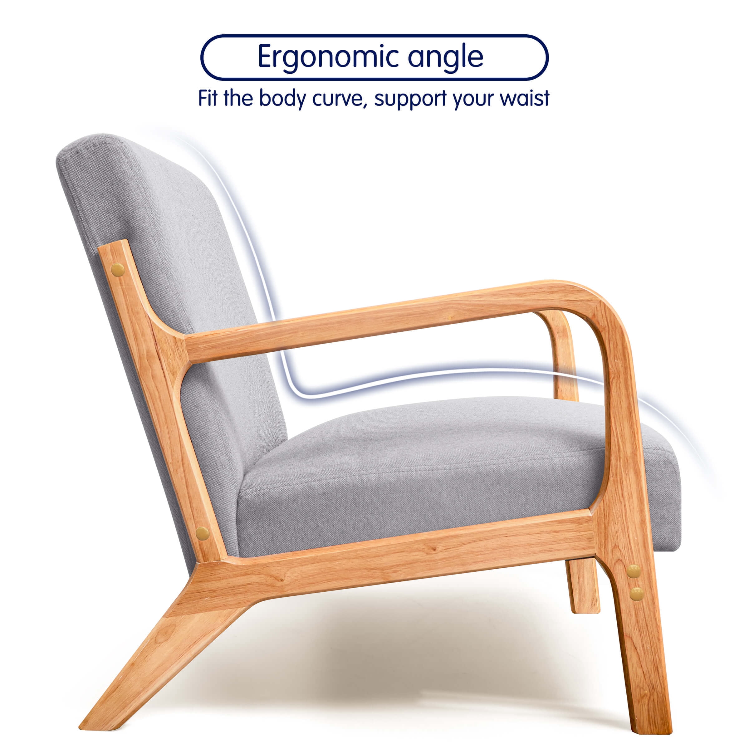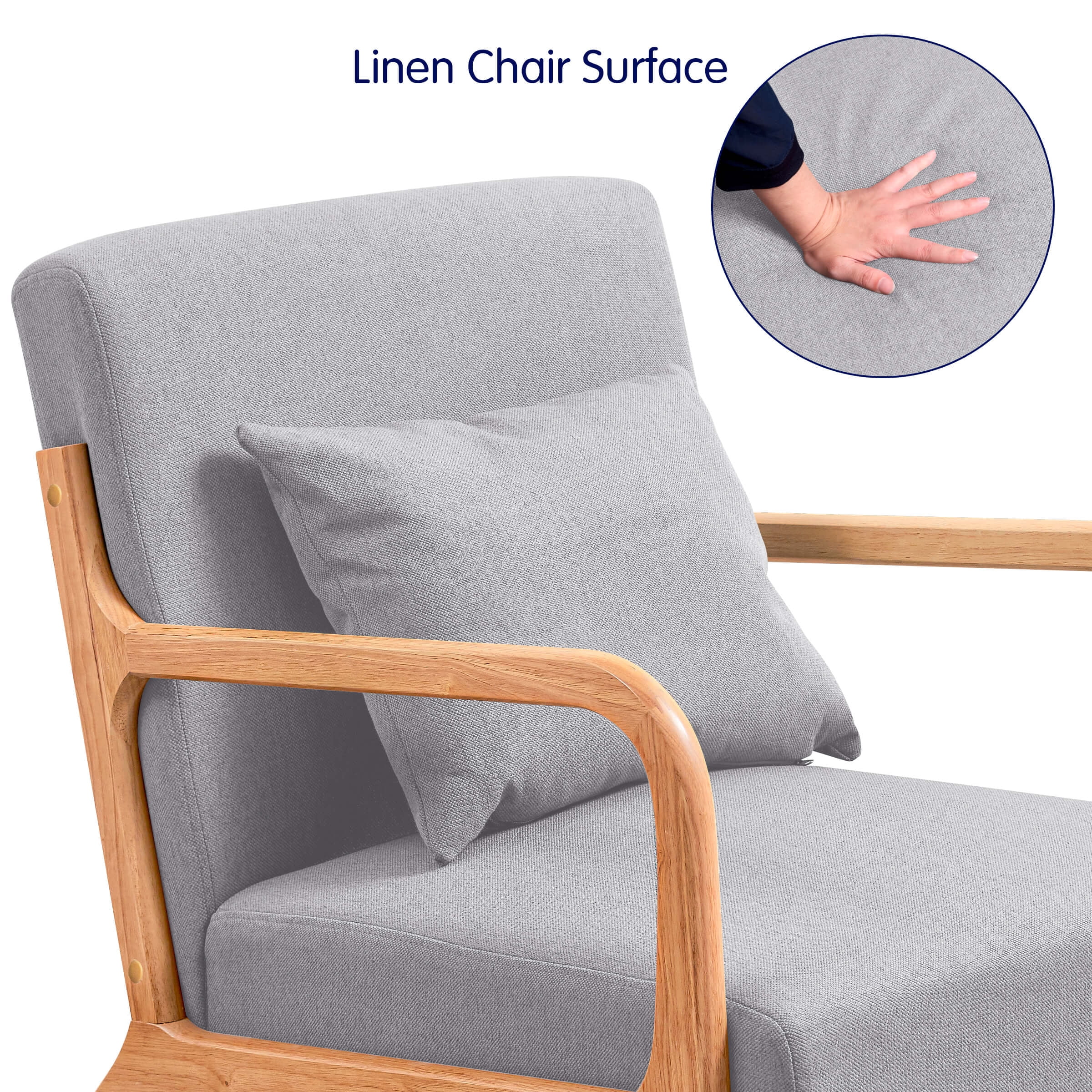 Subrtex Modern Accent Chair Linen Upholstered Arm Chairs with Solid Wood Frame, Gray