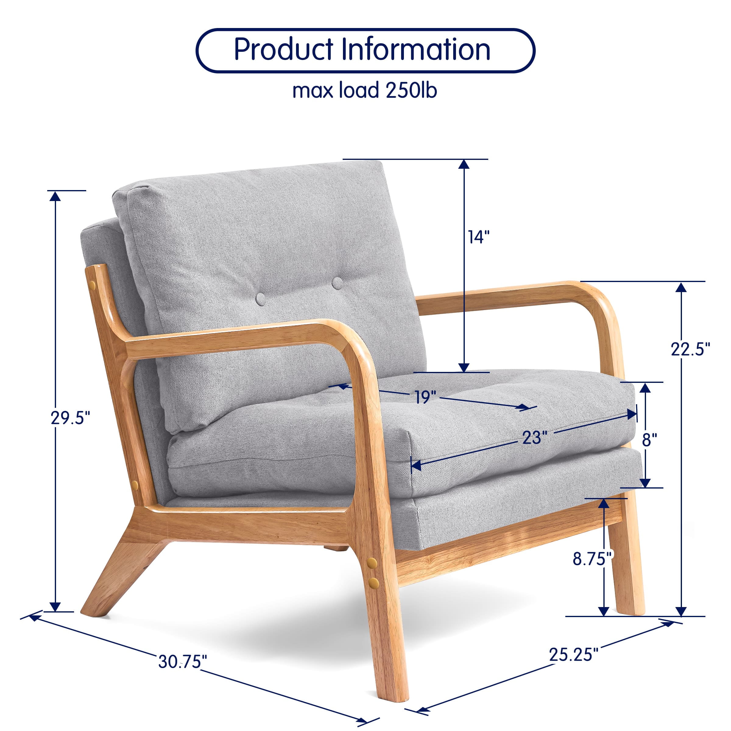 Key Features: Comfortable Seat: This accent chair is upholstered with soft seat and backrests cushions which are filled with high-density sponge and PP cotton, and covered with breathable linen fabric, allowing you to sit more comfortably. Sturdy & Durable Structure: Supported by solid wood frame, our accent chair is stable and strong enough to stand a weight of 250 lbs. In addition, our chairs come with footpads, which could also keep floor from scratching and prevent the harsh sound when moving. Ergonomic Design: The upholstered accent chairs can perfectly fit your body curve for better relaxation while reducing pressure and fatigue from the back. Multi-scene Application: Our accent chair is perfect for your modern or contemporary home. It works well in the living room, bedroom, office, study room or other space you like. Specification: Color: Beige, Gray, Natural Main Material: Solid Wood, Sponge, PP Cotton, Linen Fabric Type: Accent Chair; Wood Chairs; Arm Chairs Note: Accent Chair X 1, Arrives in 1 box