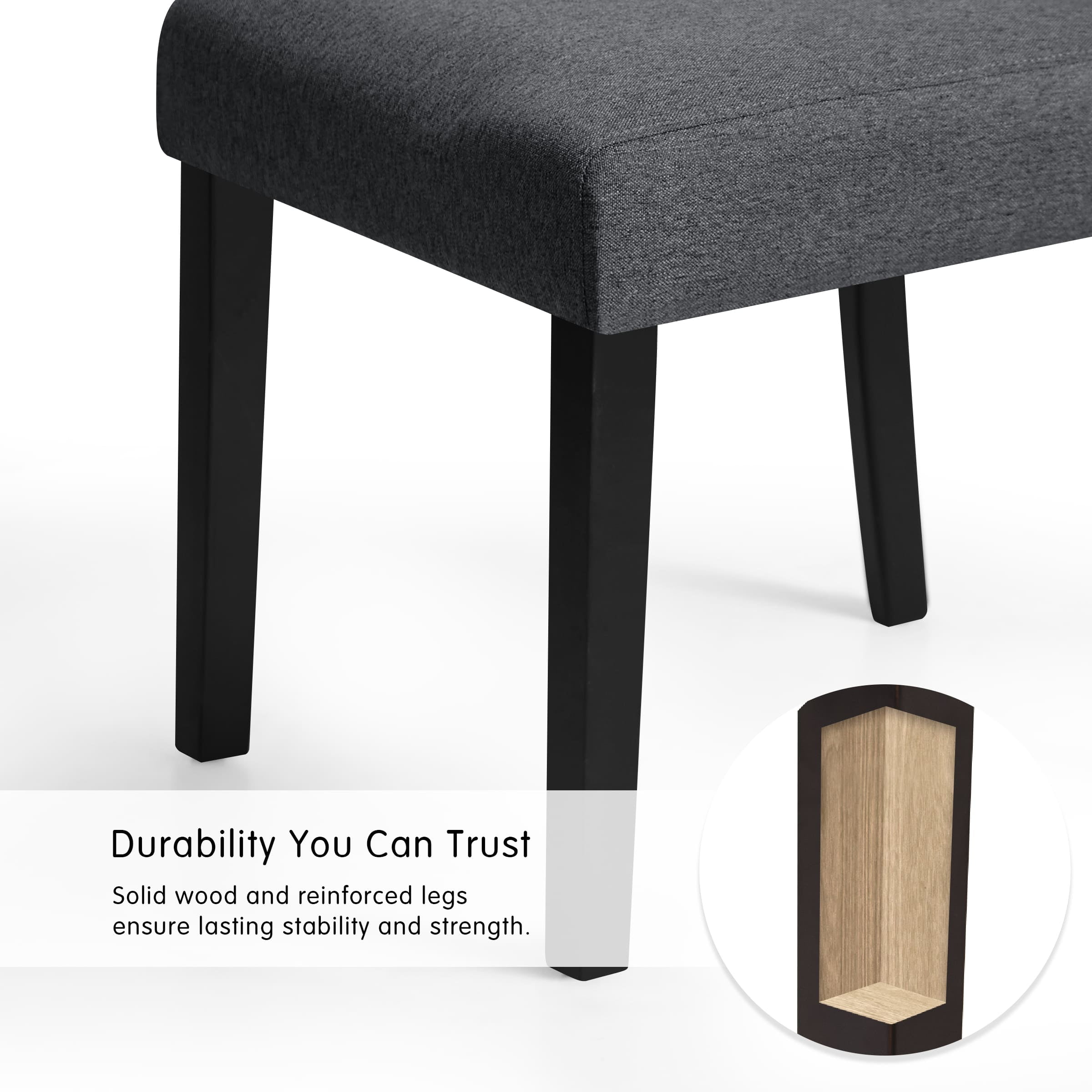 Subrtex Fabric Upholstered Dining Chairs Set of 2, Modern Kitchen and Dining Room Chairs, Dark Grey