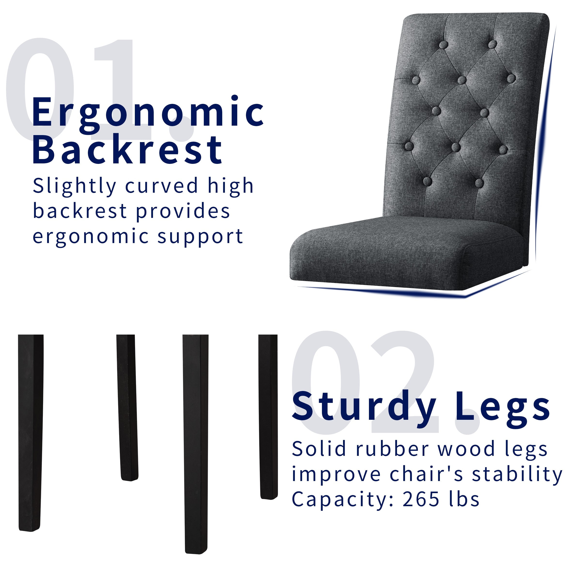 Subrtex Upholstered Parsons Chair Linen Fabric Dining Chair (Set of 2, Gray)