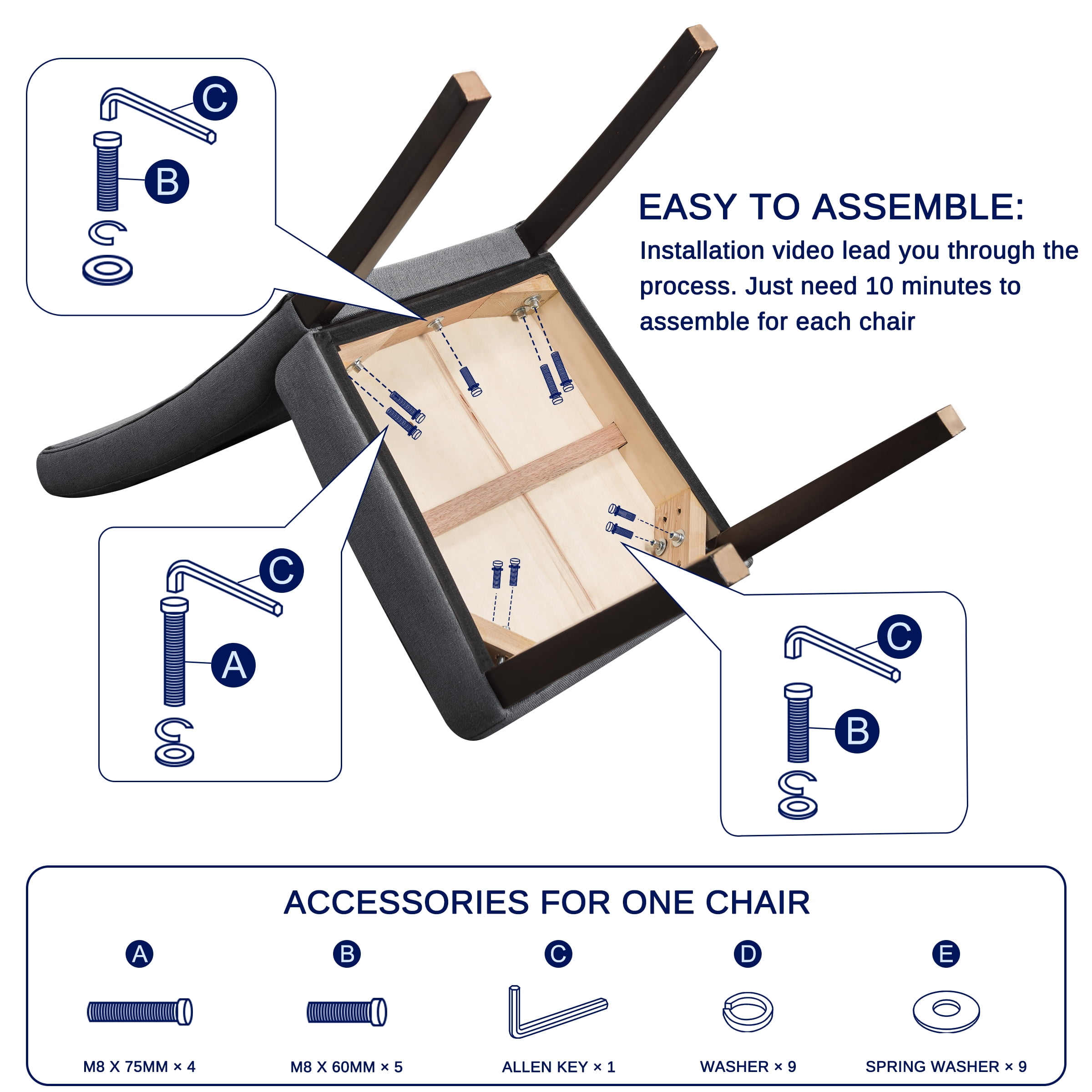 Applicable occasion: home, office, meeting room, hotel, restaurant, wedding, celebration Material: fine linen fabric, high density sponge filling, wood frame, solid wood legs Style: Homes and Gardens, Morden, Urban, Contemporary, Upholstered, Tufted Furniture type: linen fabric parsons dining room chair furniture Color: Ivory, Gray, Brown Overall dimensions: 17.25″W x 19″D x 39″H Seating area dimensions: 17.25″W x 17.25″D Backrest dimensions: 15.16″W x 21.5″H Seat height: 19″H Pack two chairs in one box Package includes two dining chairs, accessories and installation instructions Package dimensions (2 chairs): 40.16″L x 11.80″W x 18.50″H Package weight: 37.48 lbs Check the installation video on this webpage! Just need 10 minutes to assemble for each chair! Due to manual measurement, please allow ±0.5 inch error for the height and width of the chair. The color showed on the screen may be slightly different from the actual one due to different light and computer screen resolution.