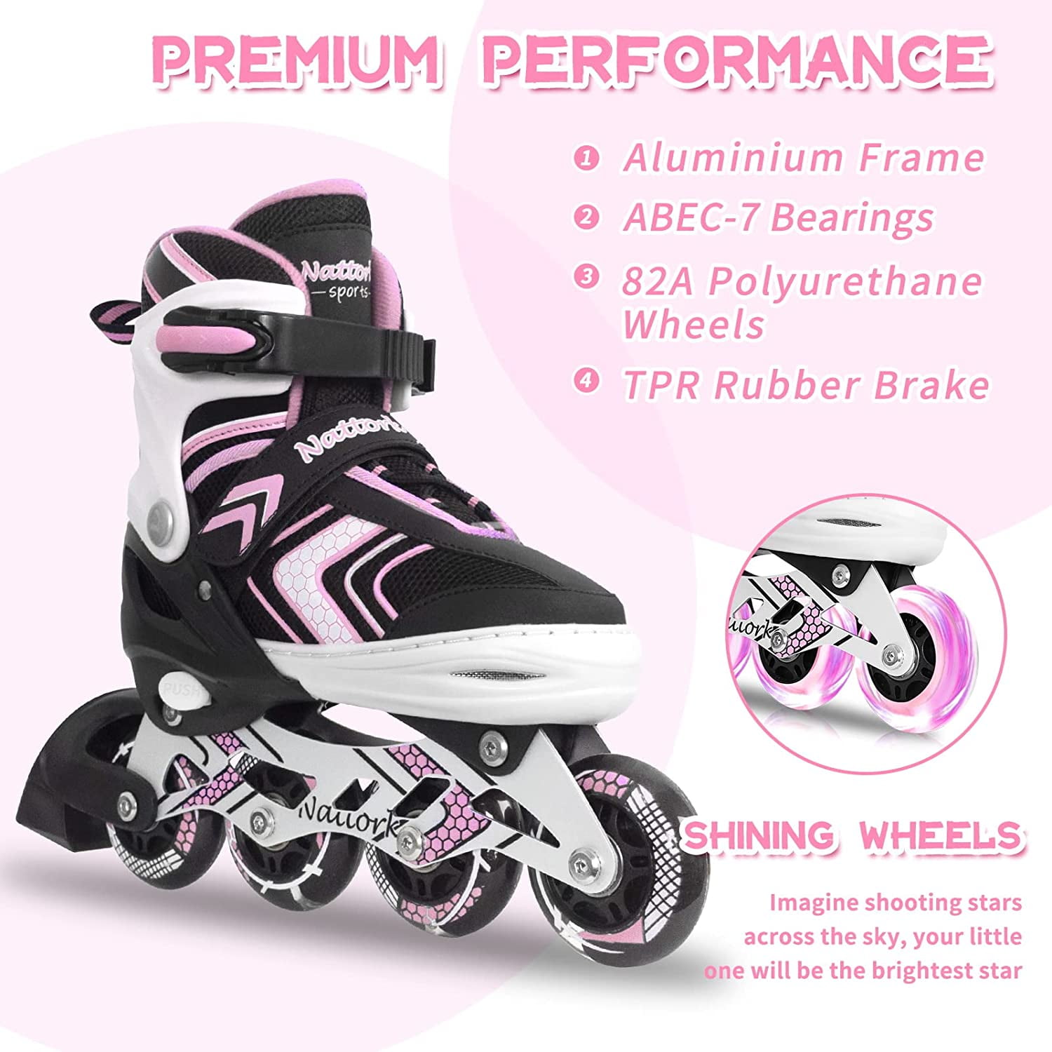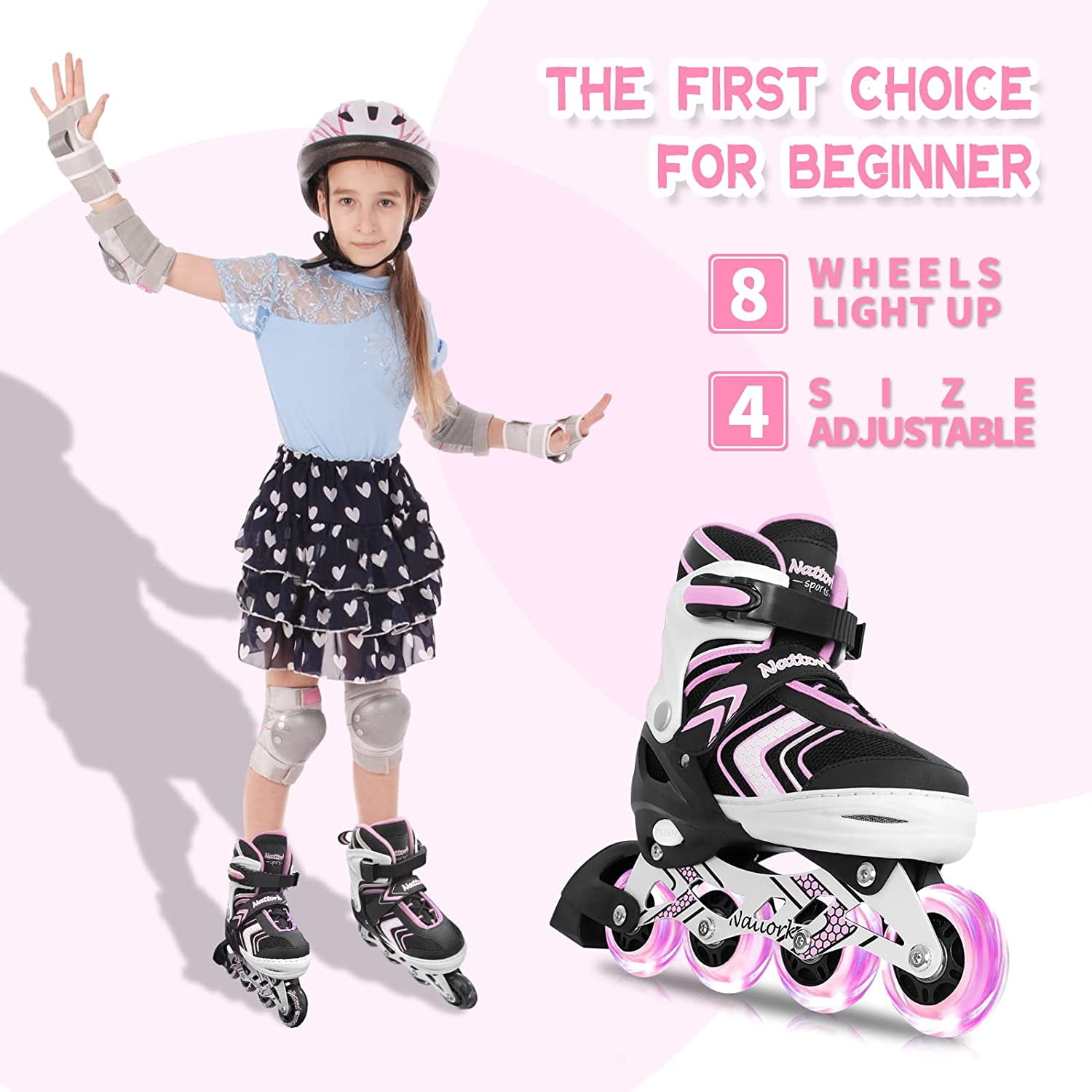 SubSun Girls Inline Skates for Kids and Boys with Light up Wheels Pink Medium(1.5-4.5 US)