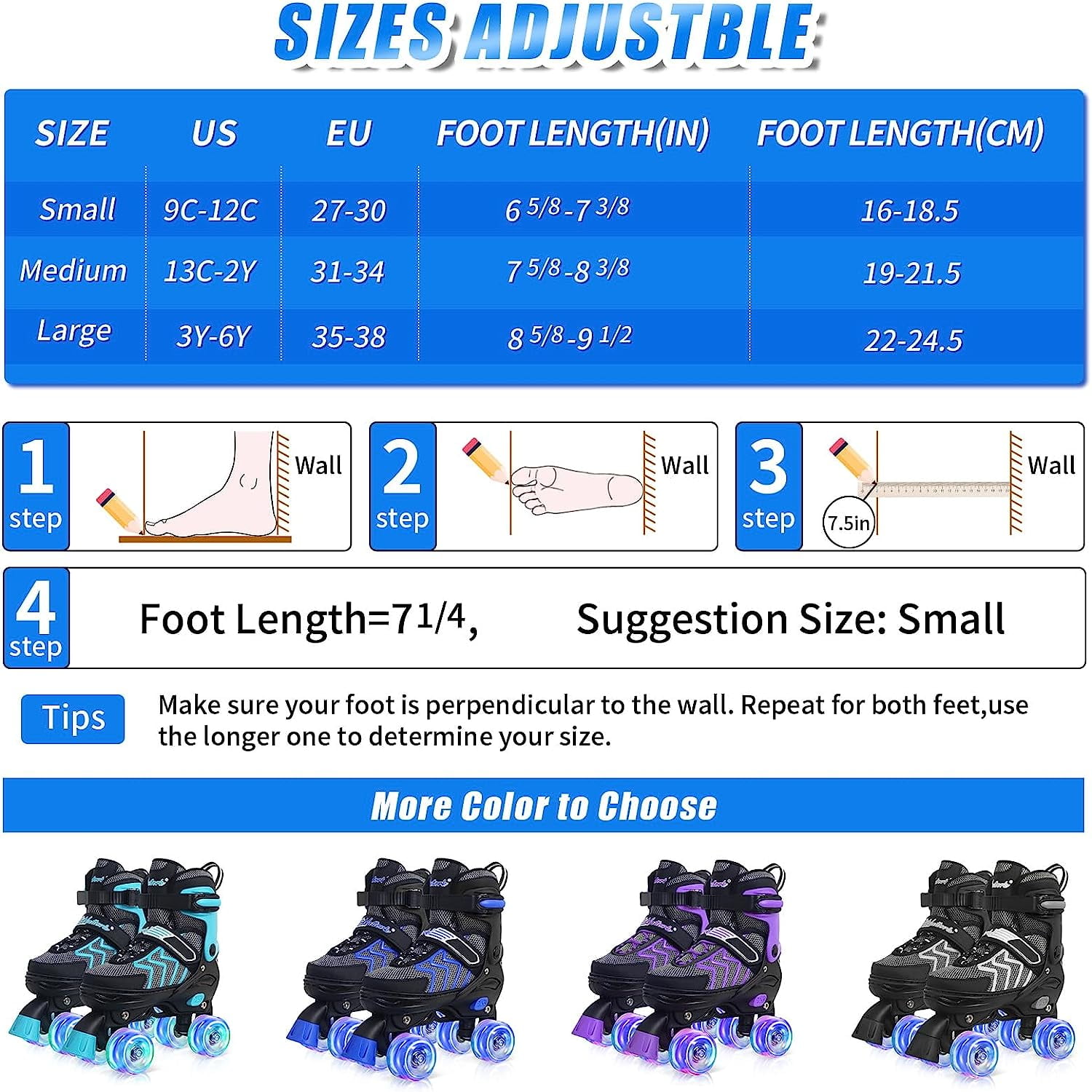 ADJUSTABLE INLINE SKATES FOR ADULT AND TEENS – SubSun Inline skates meet the needs of beginners and young skaters.Purchase according to the size scale provided by us, you can easily adjust to the size you want just by pressing the button. DURABLE AND SMOOTH – The frame of our inline skates is made of reinforced aluminum alloy frame, 84*24mm 82A polyurethane wheels are durable and smooth, and the high speed mute ABEC-7 bearings are made of high quality carbon steel for the ultimate speed experience. COMFORTABLE LINING – The surface of the shoes is made of 3D mesh cloth, and the soft lining has good sweat absorption ability, so you will feel very breathable and comfortable. TRIPLE SAFETY PROTECTION – Triple protection including LACES, 45° shoulder straps and high strength clasp is sure to provide safe ankle support to protect you during the glide. LIFETIME REPLACEMENT WARRANTY – SubSun have 100% confidence in our blades roller. Contact us if you are not satisfied with our product, we offer a 30-day refund policy. If you have any question about our inline skates, we will happily accommodate and work with you. All issues will be solved within 24 hours. Your satisfaction is our highest priority!