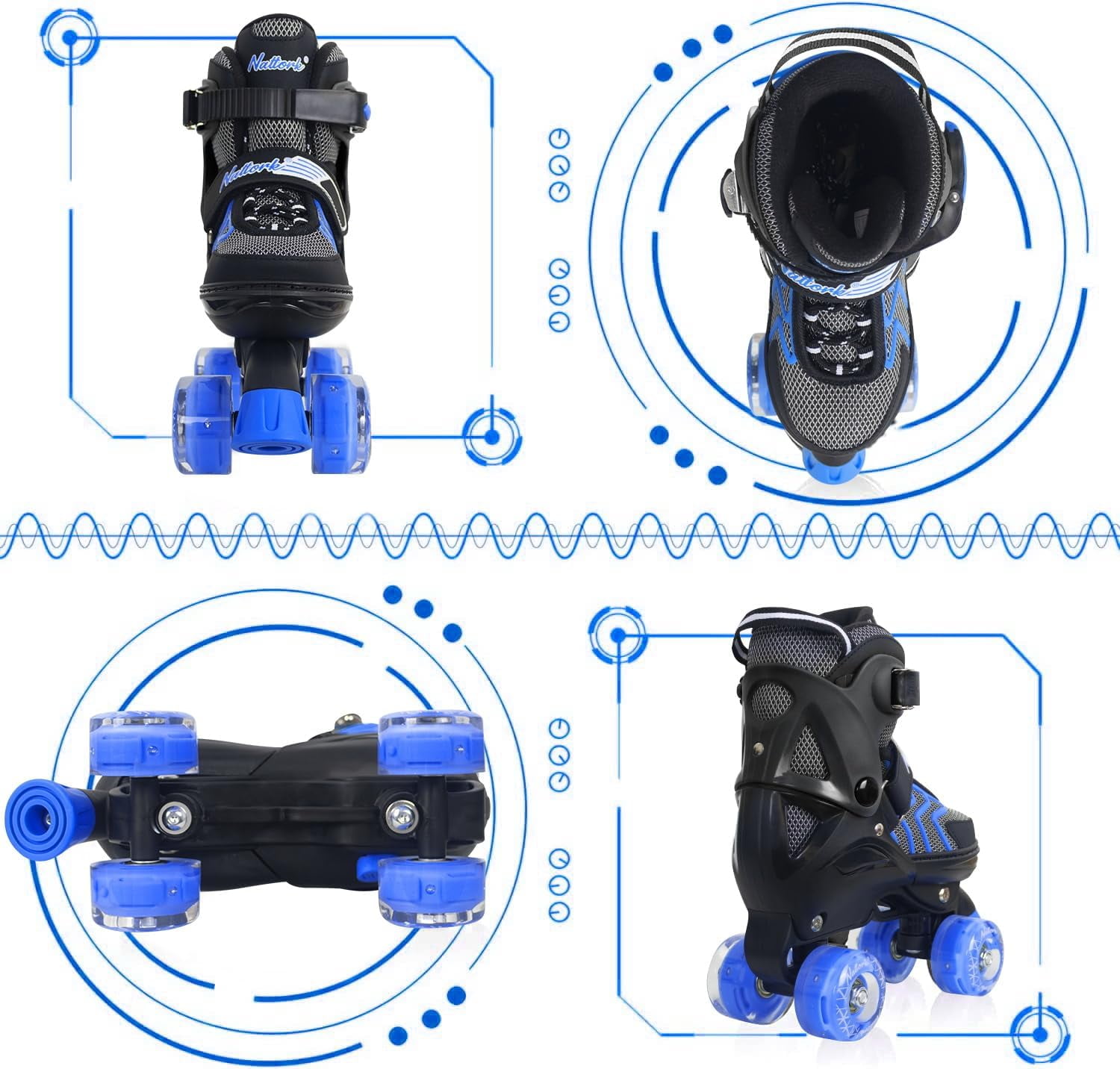 SubSun Kids Roller Skates for Boys Adjustable Rollerskates with Light Up Wheels