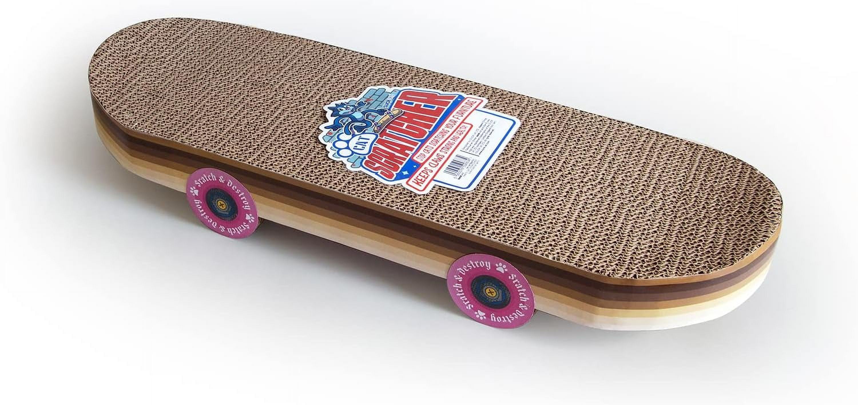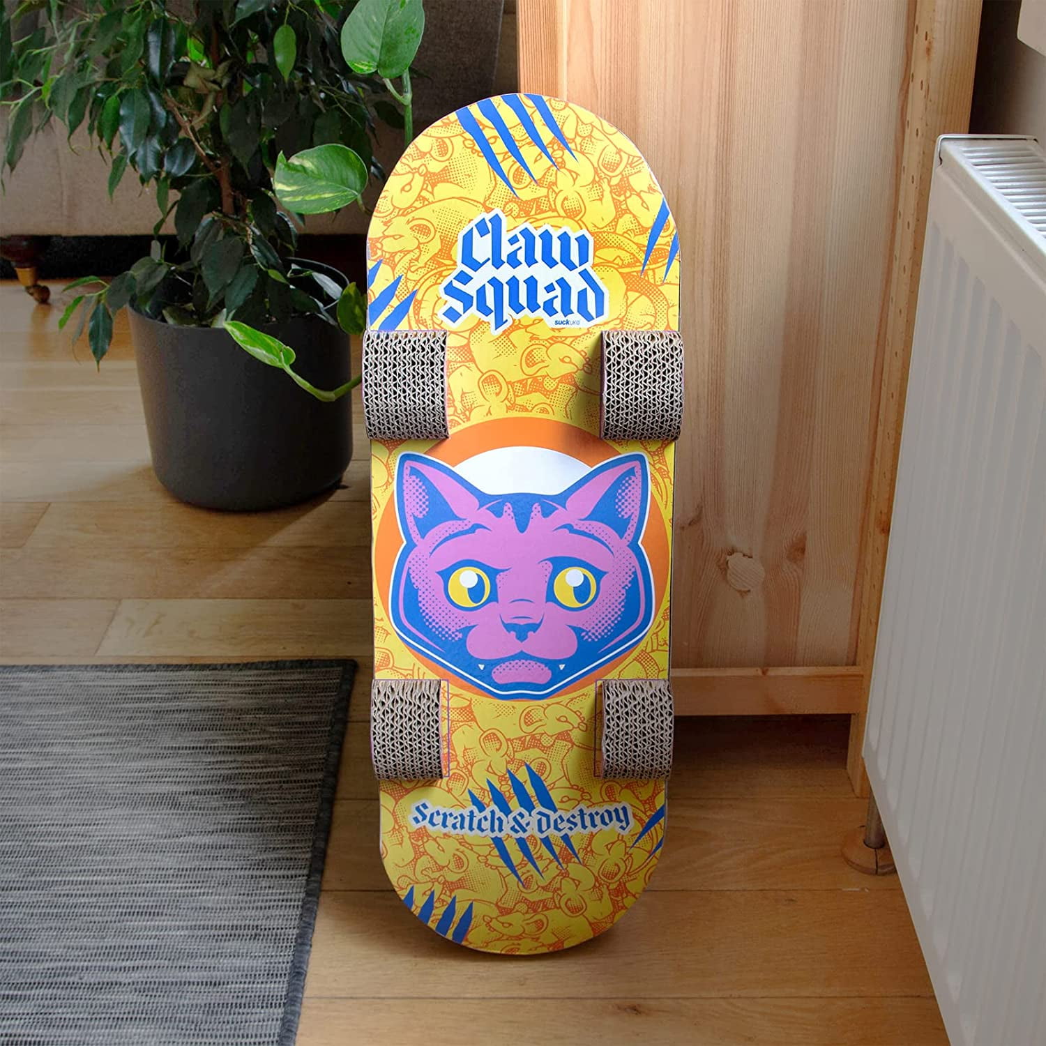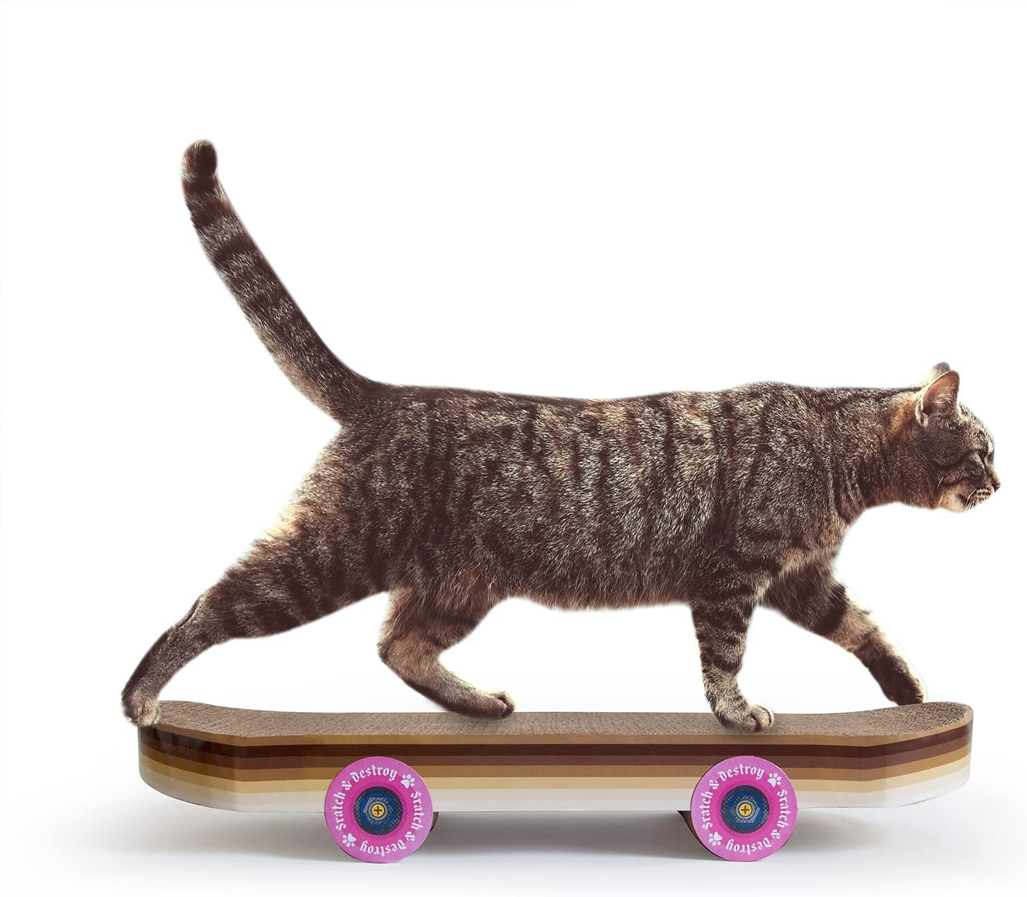 Turn your kitty into the ultimate pro skater! A cat scratch pad & scratching board for cats with the look of a totally awesome skateboard; Curb surfing’s answer to indoor cat toys & cat accessories! Funny cat toys & kitten supplies with no assembly required; If you’ve got a chaos causing feline, give them a cat scratching board & corrugated cardboard toys for cats to really get their paws into Our alternative to a cat scratching post, cat pads or cat houses & condos will have the whole skatepark stoked; A cool-as cat gift for indoor clawing, it’s time to kick old cat furniture to the curb Or hilarious cat enrichment; Our cat perch skateboard & kitten scratching post will have them doing a 180 flip on bad behavior! Rad pet supplies for cats to help them resist destructive temptation Even give as highly unique gifts, cat supplies & kitten accessories for new pet owners, kitty toys for indoor cats, new pet furniture & funny cat gifts for the dedicated skater in your halfpipe crew
