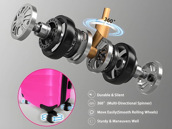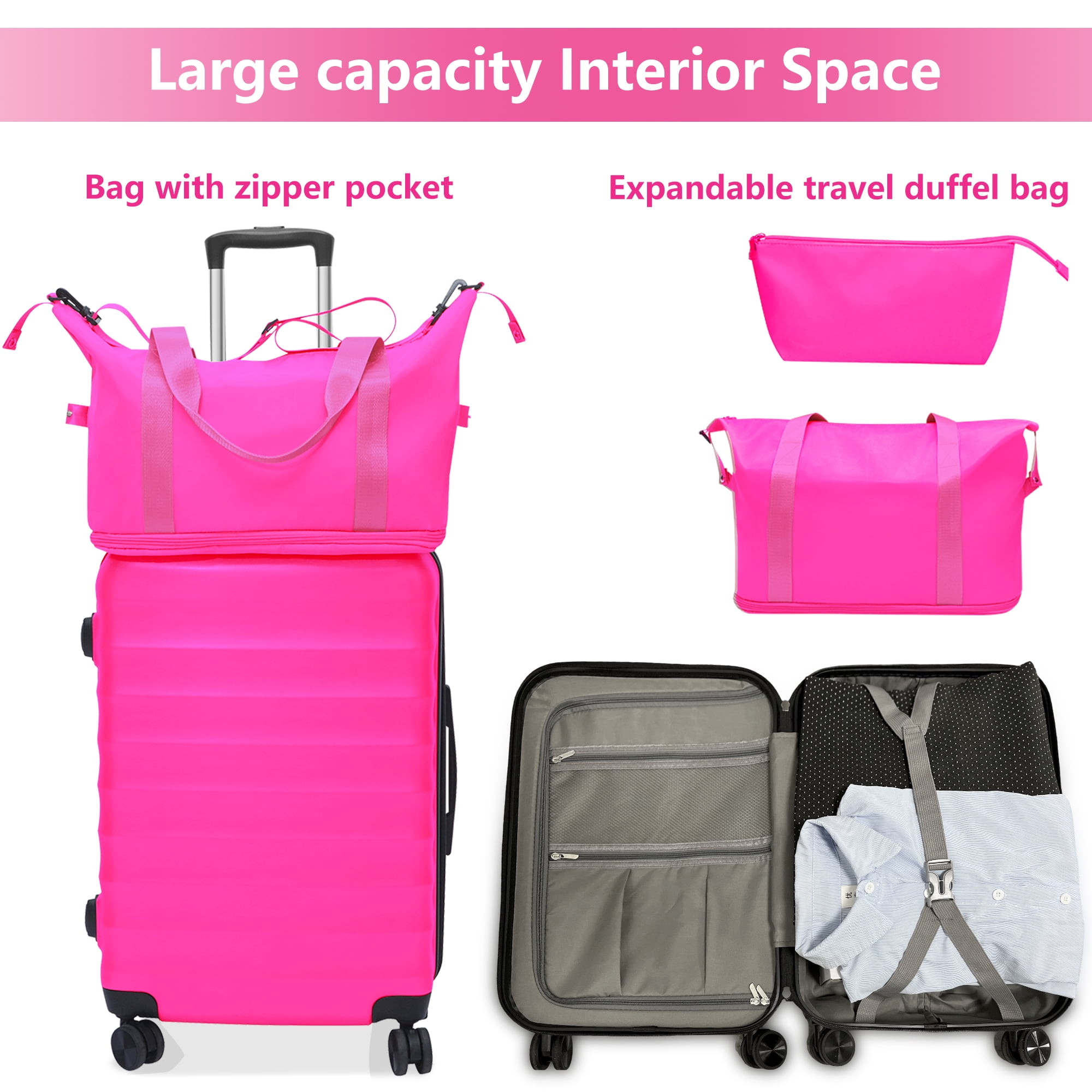 SUGIFT 20in Suitcase Set 3 Piece Carry On Hardside Luggage with TSA Lock Spinner Wheels Rose Red