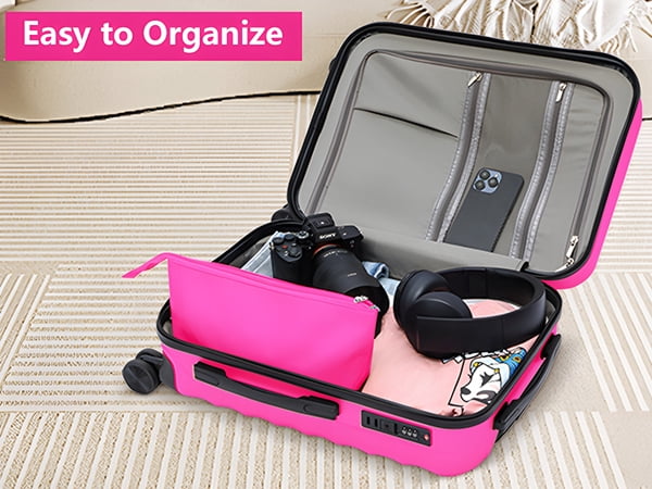 3 piece set offers a includes a 20’’ luggage, a travel duffel bag and a toiletry bag. Fully equipped for all your travel needs. Mounted TSA-approved lock, and fully-lined interior divider with organization pockets, keep your belongings secured and organized in the luggage. Crafted with ABS for durability and versatility, the luggage is lightweight and built to last. Slide or glide with the retractable handle and four multi-directional spinner wheels that move at your pace. The duffel bag, backpakck and toiletry bag are all made of polyester fabric which is mild water-resistant. The duffel bag and backpack are both designed with the back sleeve, so you can conveniently attach them to the retractable luggage handle. There are multiple functional pockets in the backpack, making it versatile for different needs of travel. Due to differences in monitors/screens – Actual product color may appear slightly different than shown on the site